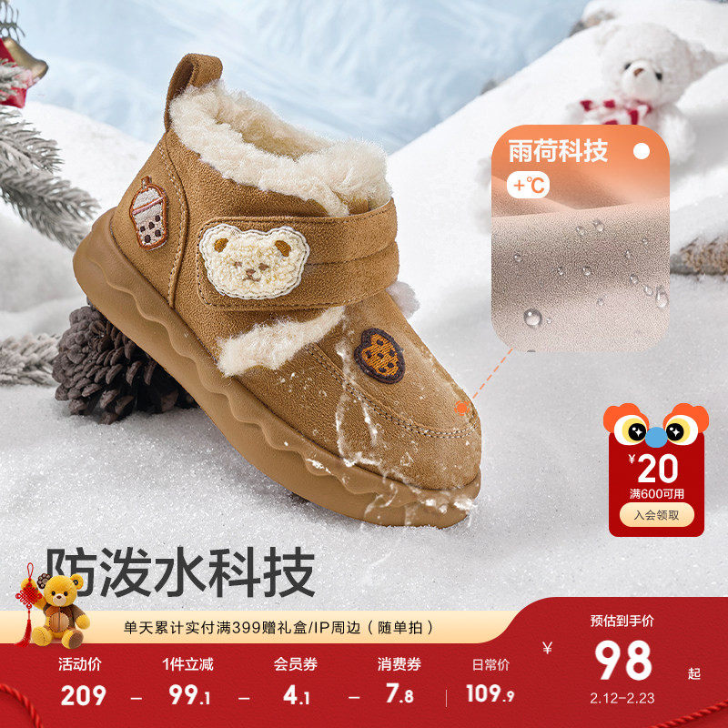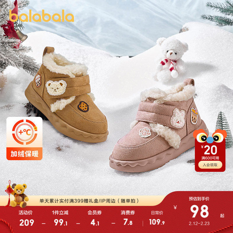 📚 巴拉巴拉童鞋儿童雪地靴加绒加厚棉靴冬潮流新短靴女童防泼水靴子