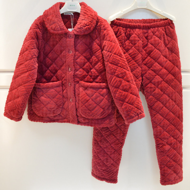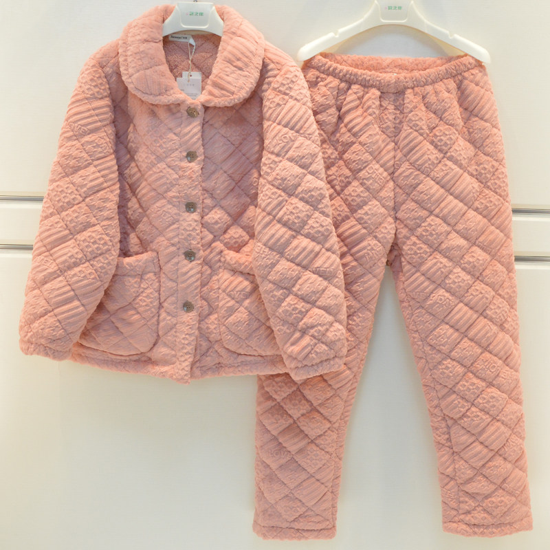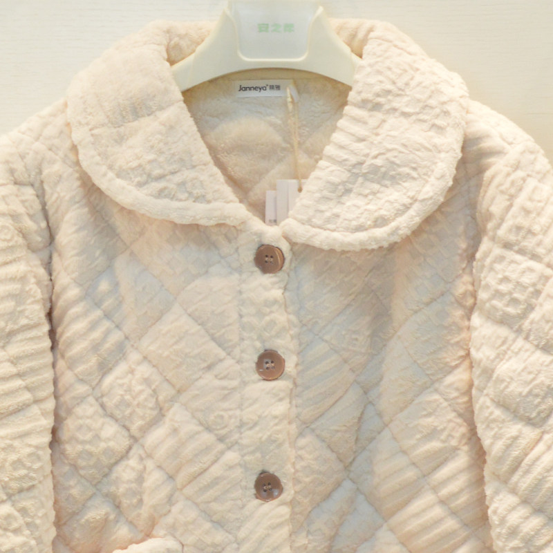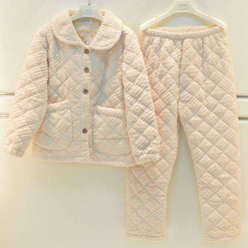📚 精雅睡衣冬季女士牛奶绒素色三层加厚夹棉宽松高级感棉袄家居服