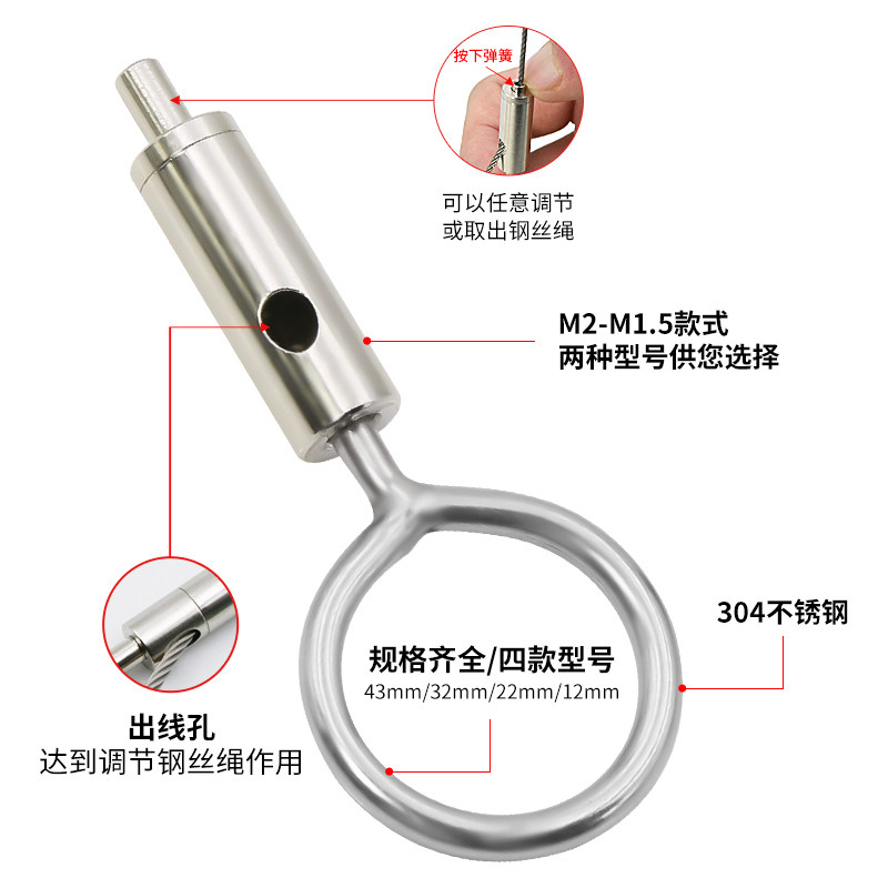 📚 2mm圈环锁线器钢丝绳调节钩服装吊环卡紧钩保险钩吊码广告牌吊码
