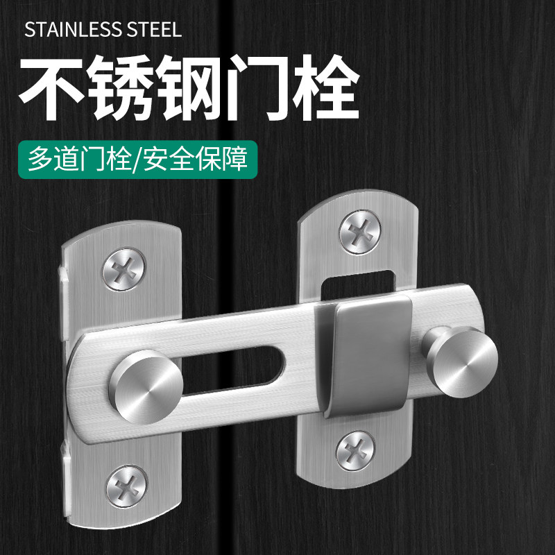 📚 明装插销不锈钢老式门搭扣免打孔防盗门扣门栓门锁移门卫生间卡扣