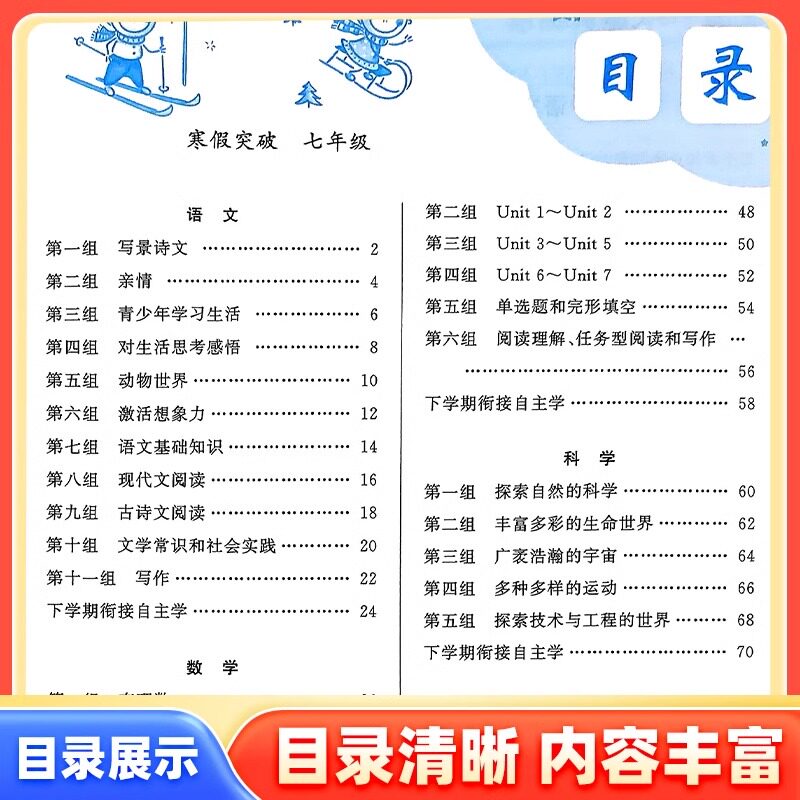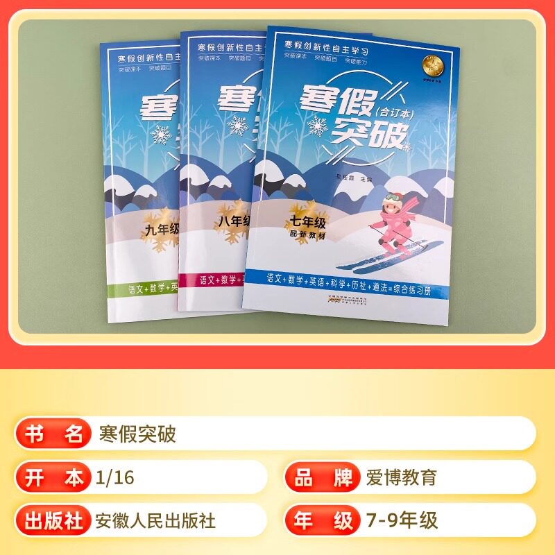 📚 2025版寒假突破7七年级8八年级9九年级语文数学英语科学历史与社会道德与法治合订本初一二三寒假作业本一本通预习复习同步练习册
