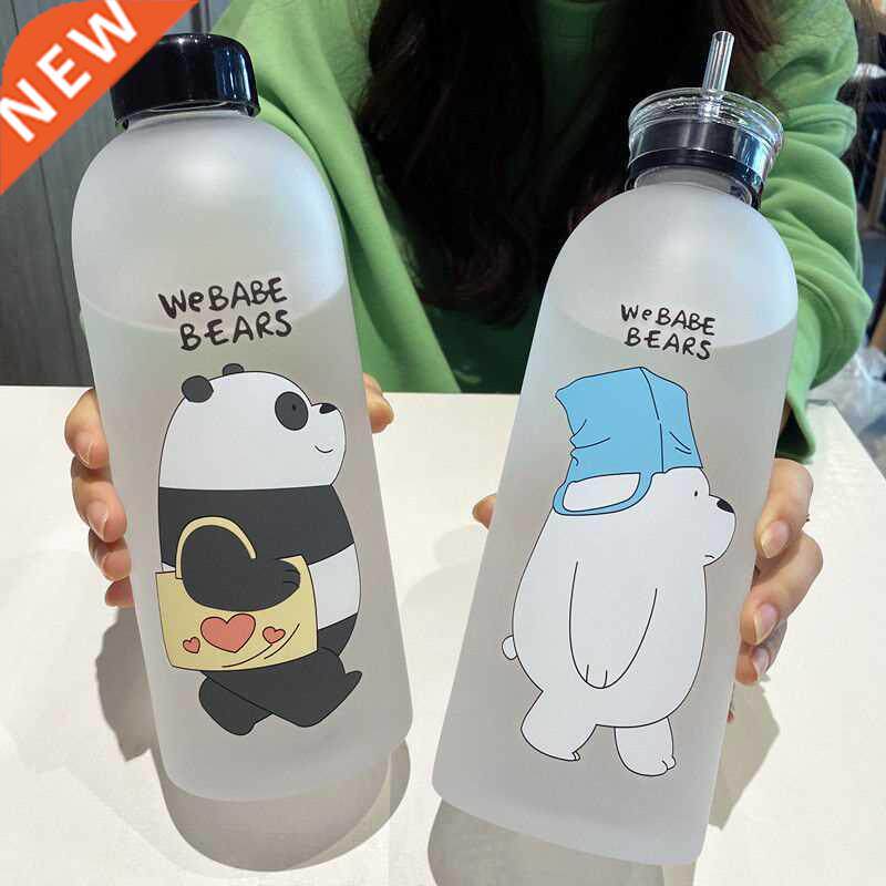 📚 Cute Panda Bear Cup 1000ml Water Bottles With Straw Transpar