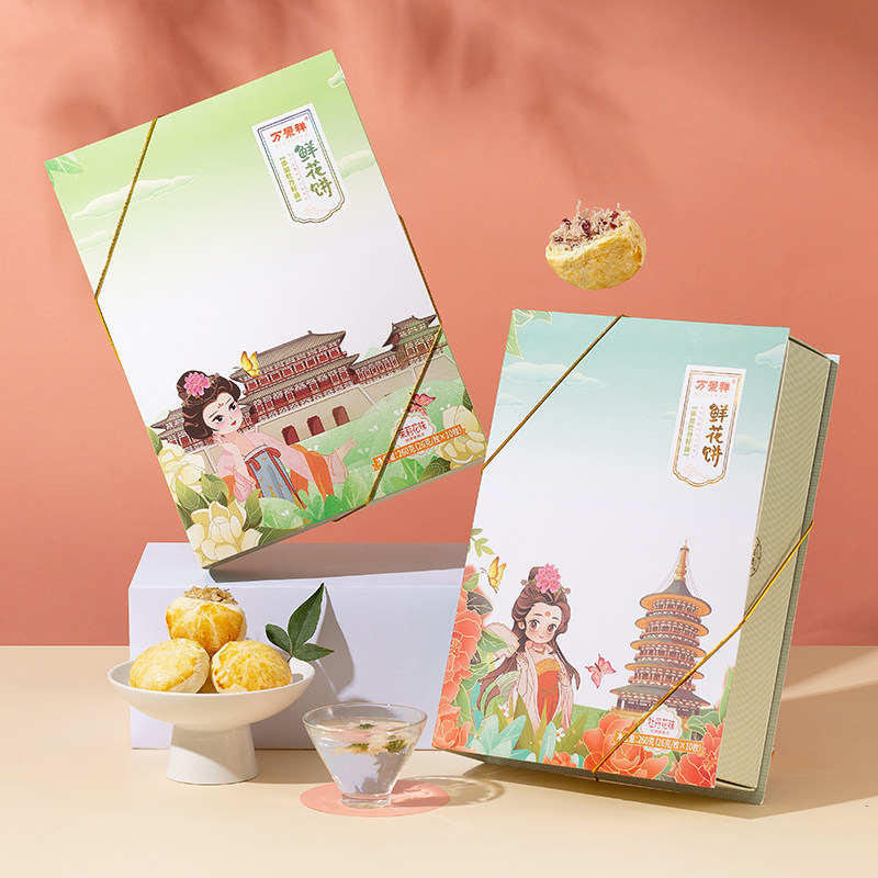 📚 万景祥牡丹鲜花饼高档礼盒装 河南洛阳特产小吃糕点心零食酥饼