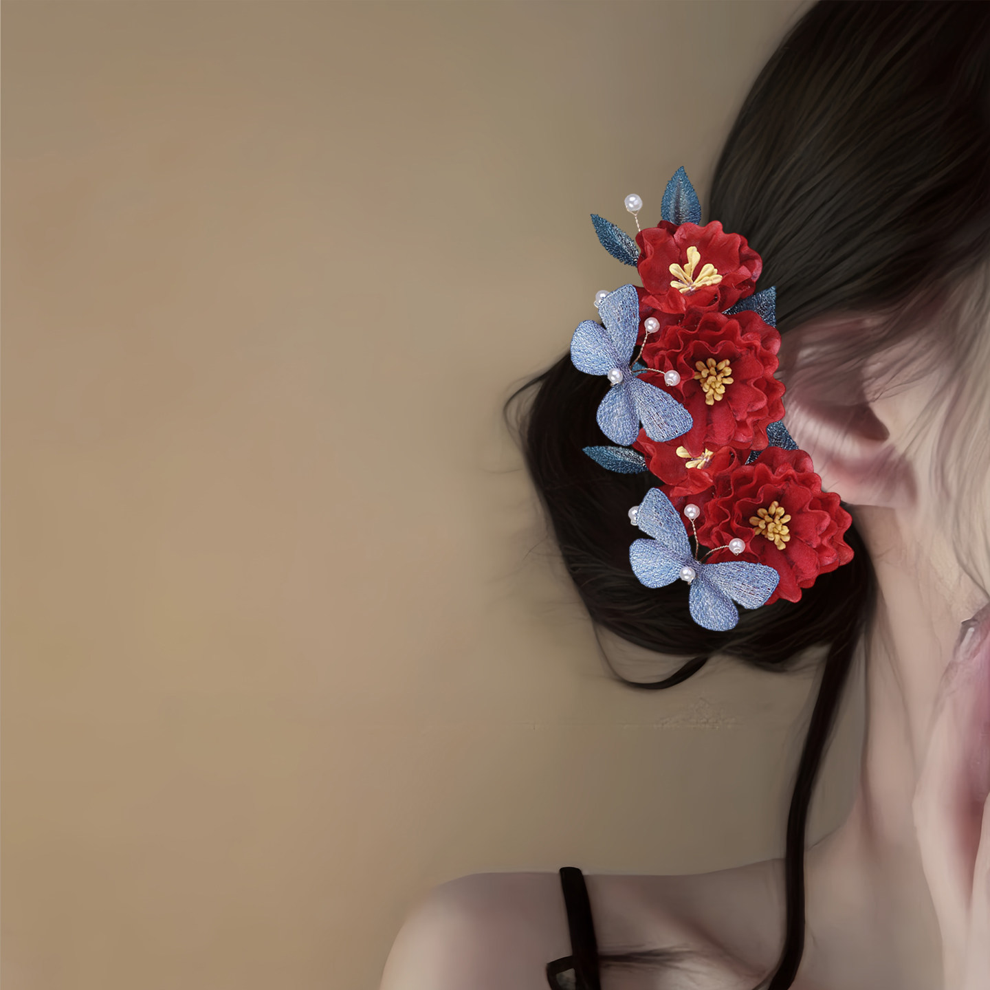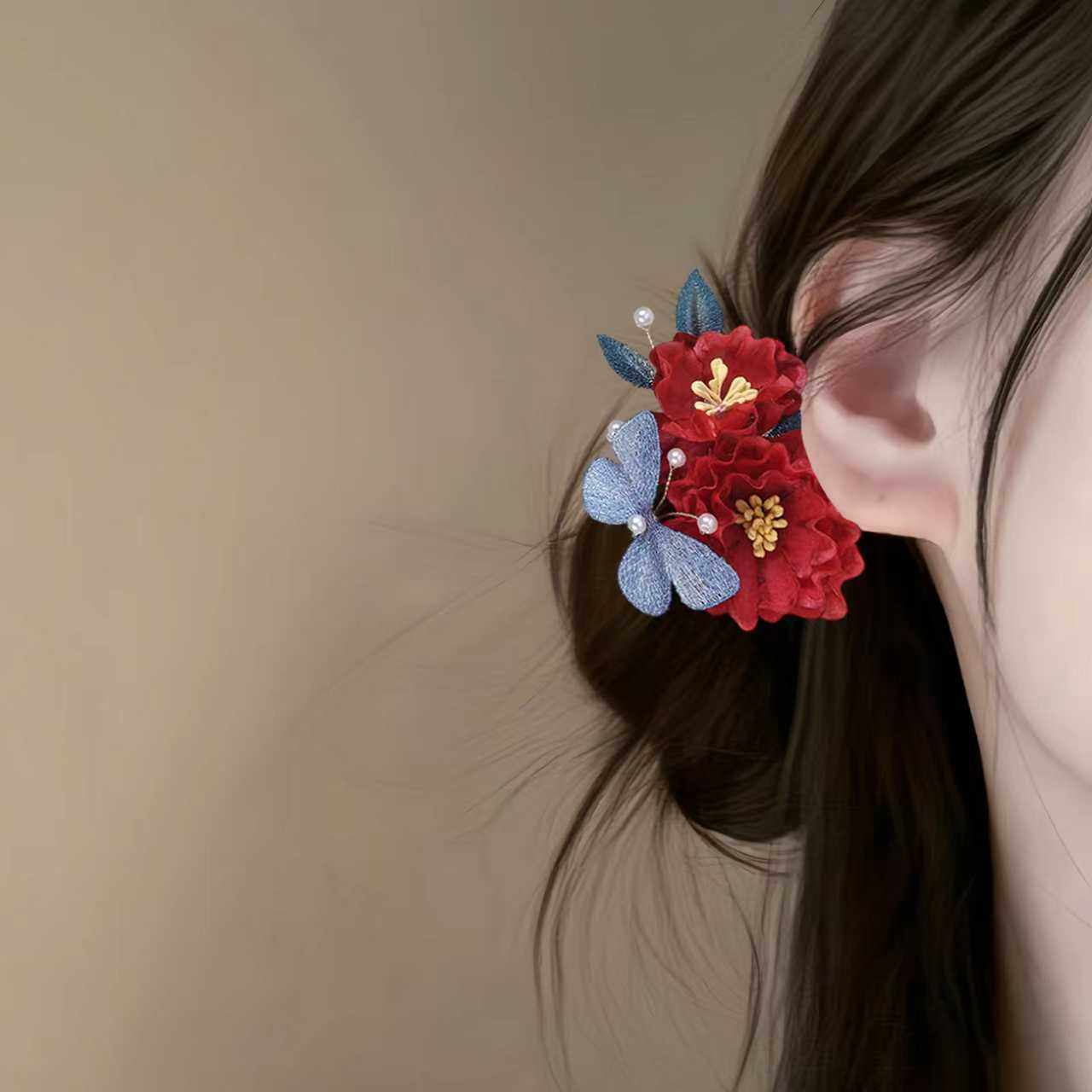 💃💖“十里红妆,新中式红色花朵发夹,惊艳你的结婚之旅!”