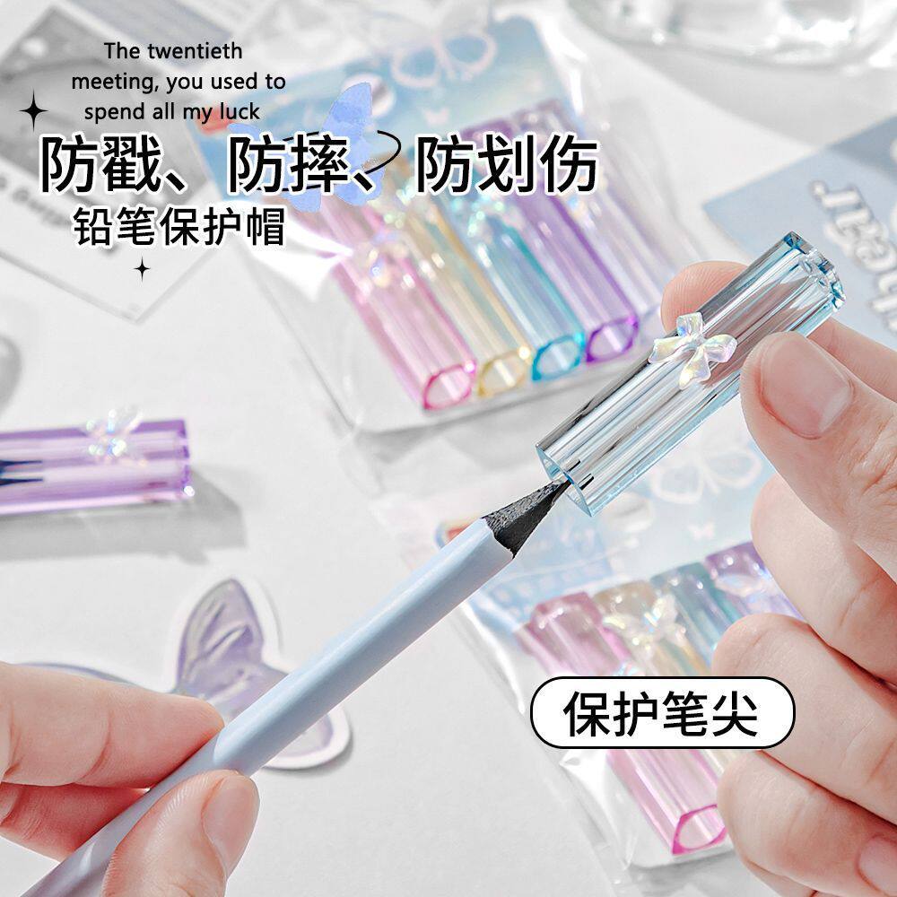 📚 一年级铅笔保护套镭射蝴蝶铅笔帽高颜值小学生专用延长器简约笔盖