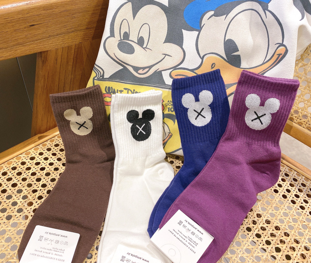 📚 兔美善韩国代购女装 春 洋气X米奇头亮晶晶减龄百搭中筒棉袜 特