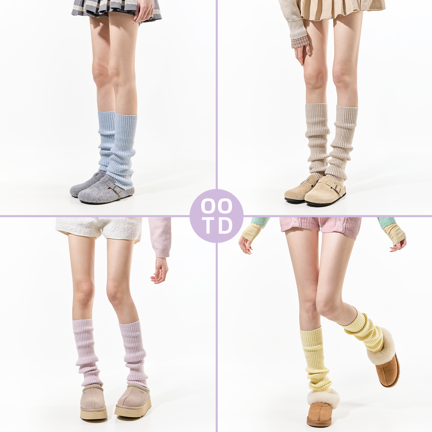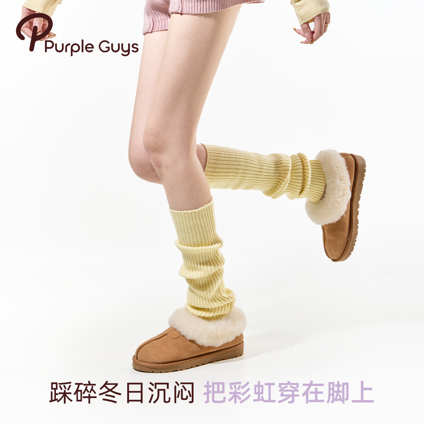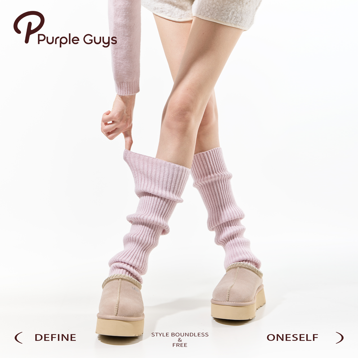 📚 purpleguys粉色羊毛袜套女冬加厚保暖2025新款竖纹显瘦堆堆小腿套