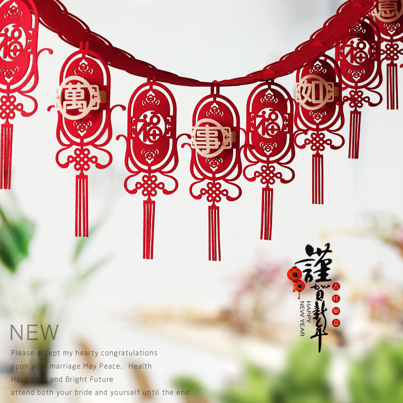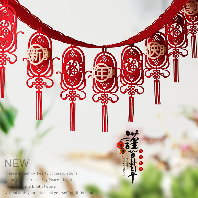 📚 2026马年创意绒布福字拉花拉旗元旦春节新年装饰春节用品会场布置