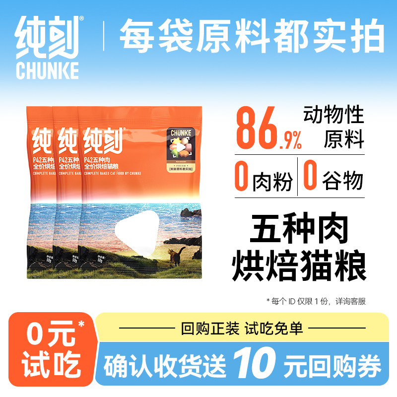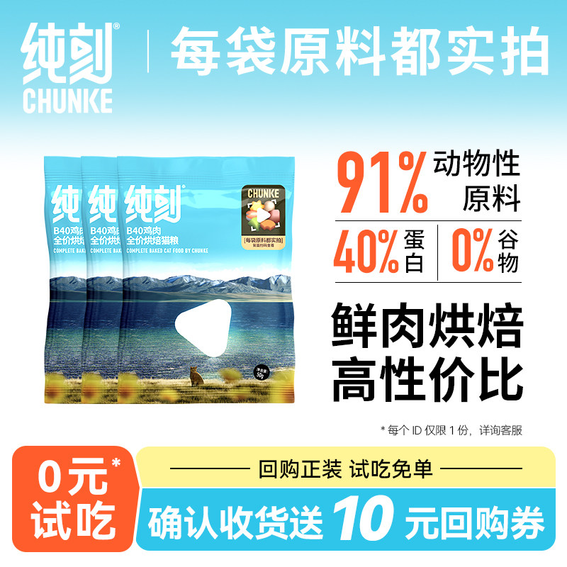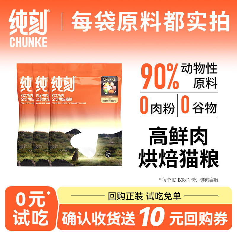 📚 【U先试用】纯刻 低温烘焙猫粮试吃体验装 50g*3包