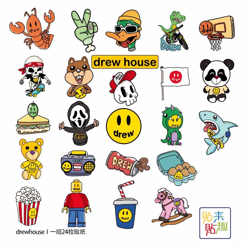 #drewhouse #比伯周边 #可爱行李箱贴纸 #潮流平板滑板 #水杯贴画 #券后价1