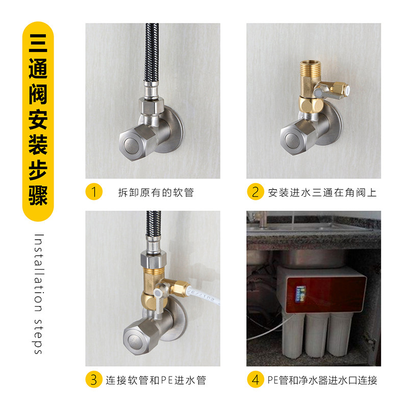 📚 净水器进水三通2分3分4分球阀过滤器直饮纯水机阀门角阀接头配件