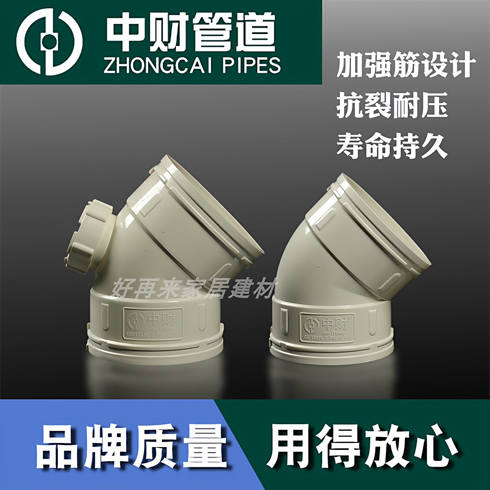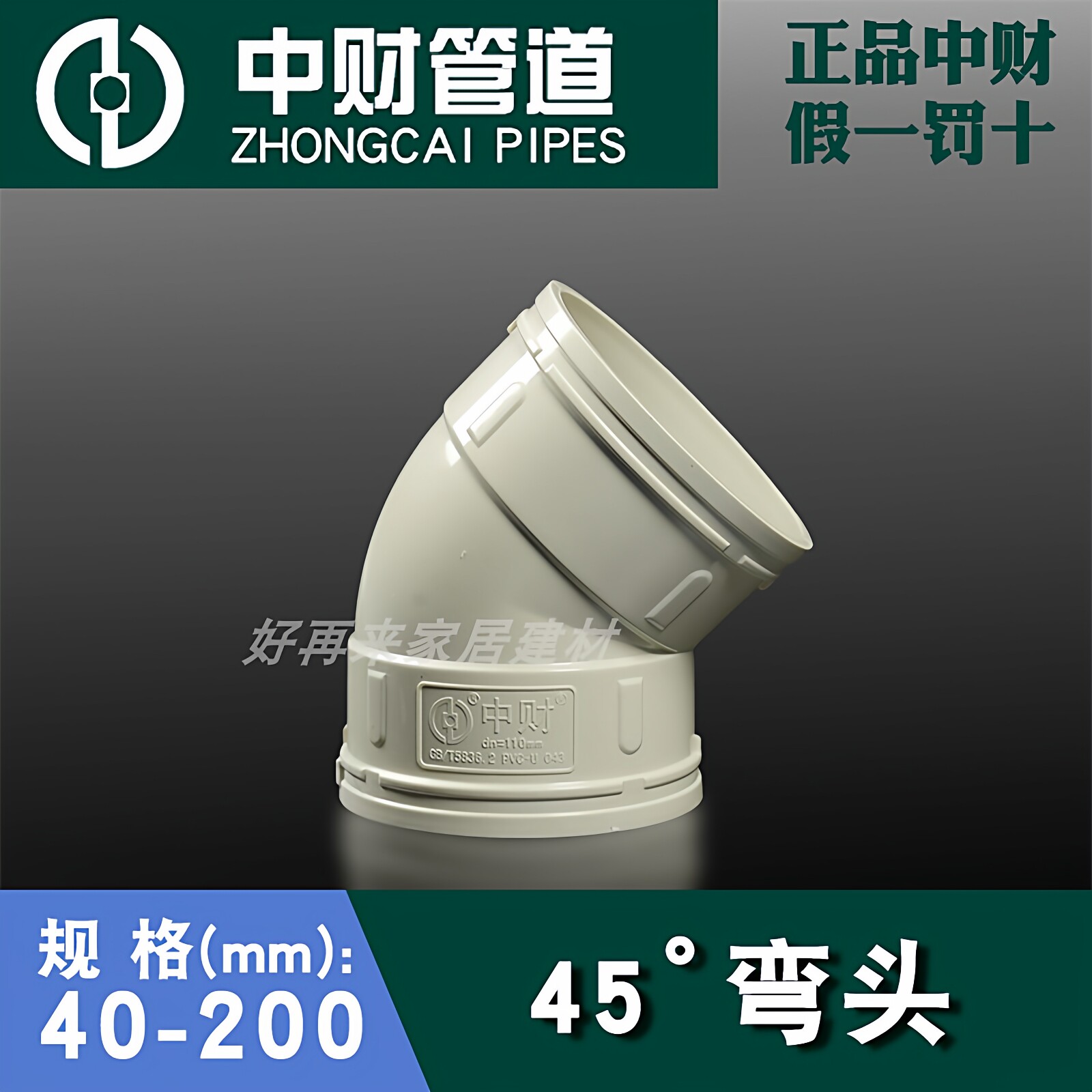📚 中财PVC排水管配件45度弯头50直弯110弯头带检查口75小弯下水管件