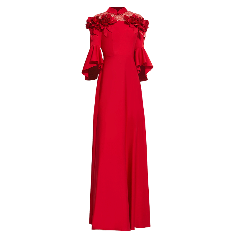 📚 创意狐红色新中式改良旗袍主持人晚装宴会显瘦晚礼服年会订婚礼服
