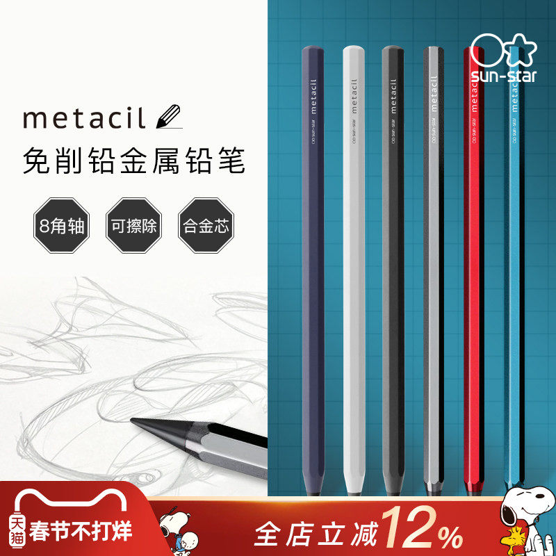 📚 sun-star太阳星metacil永恒铅笔石墨合金金属笔杆免削铅笔16000米书写长度可换笔头学生白领设计师