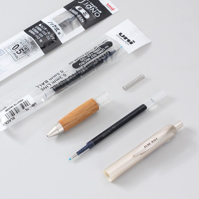 📚 日本UNI三菱中性笔UMN-515橡木握手按动签字笔学生用原木笔握0.5m