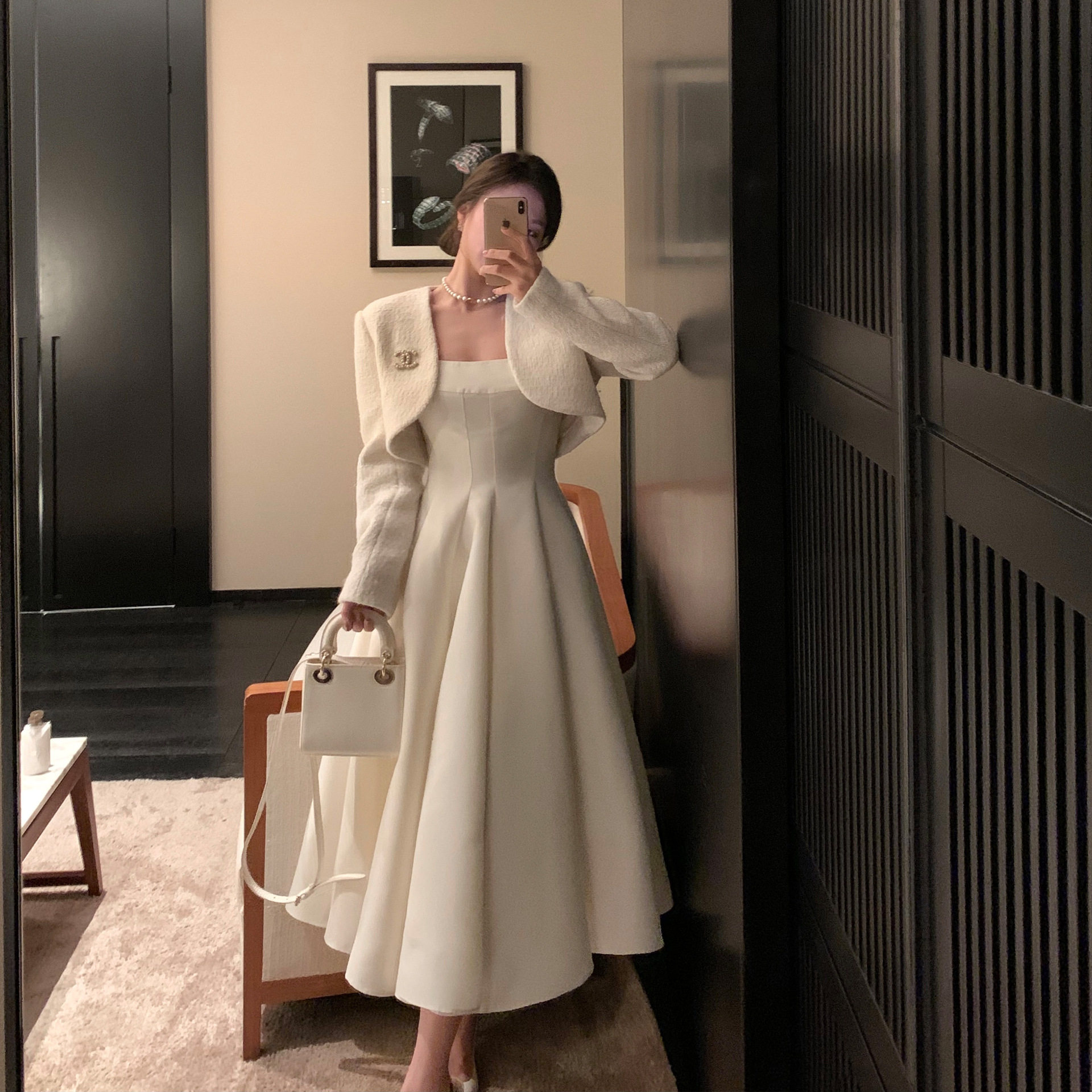 📚 白色赫本裙2026新款吊带小礼服小白裙收腰日常可穿连衣裙轻婚纱