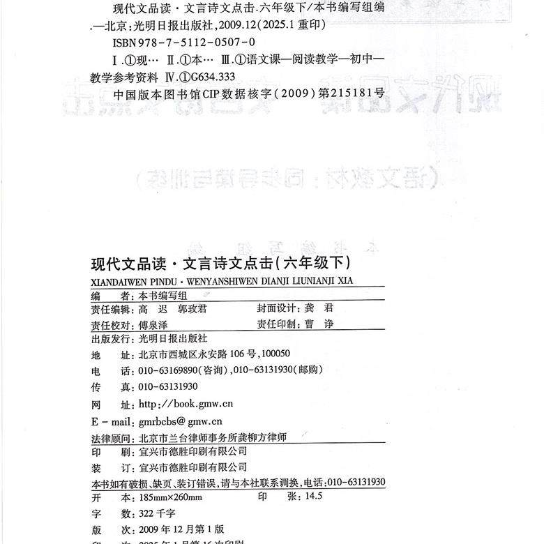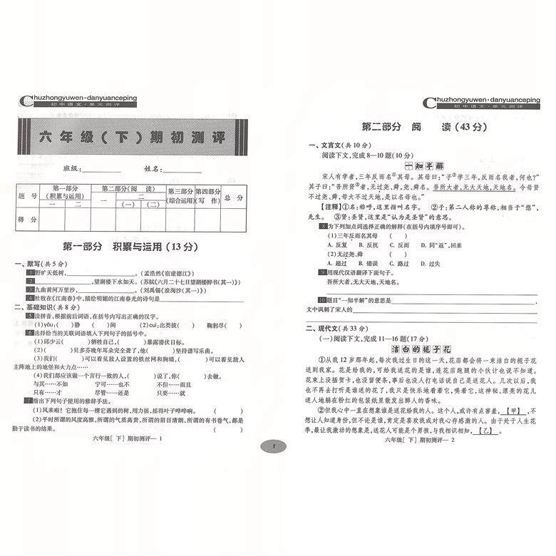 📚 2025新版现代文品读六年级下文言诗文点击单元测评6年级下第二学期光明日报出版社点击语文六下上海文言文点击六年级下