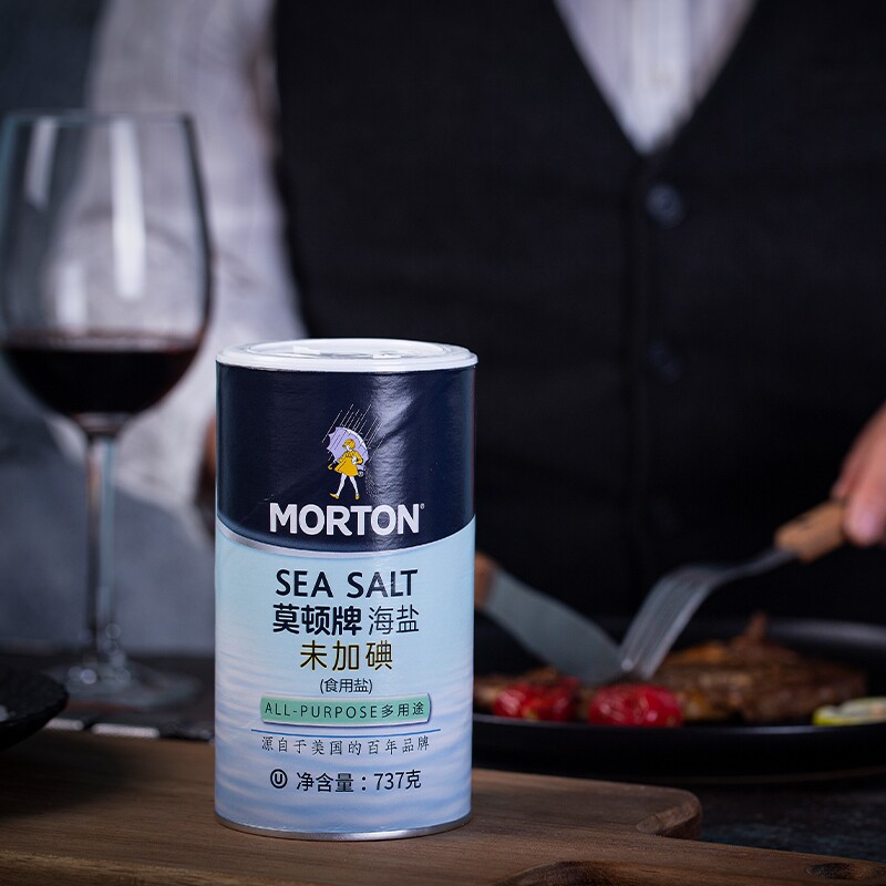 📚 中盐莫顿无碘海盐食用盐家用737g食盐瓶装未加碘不添加抗结剂