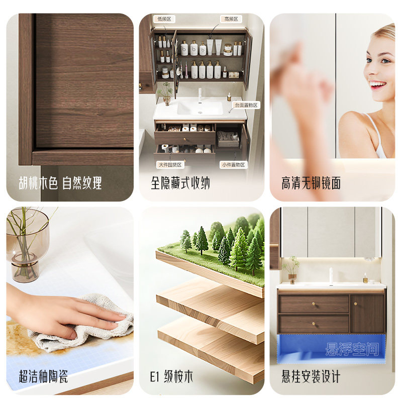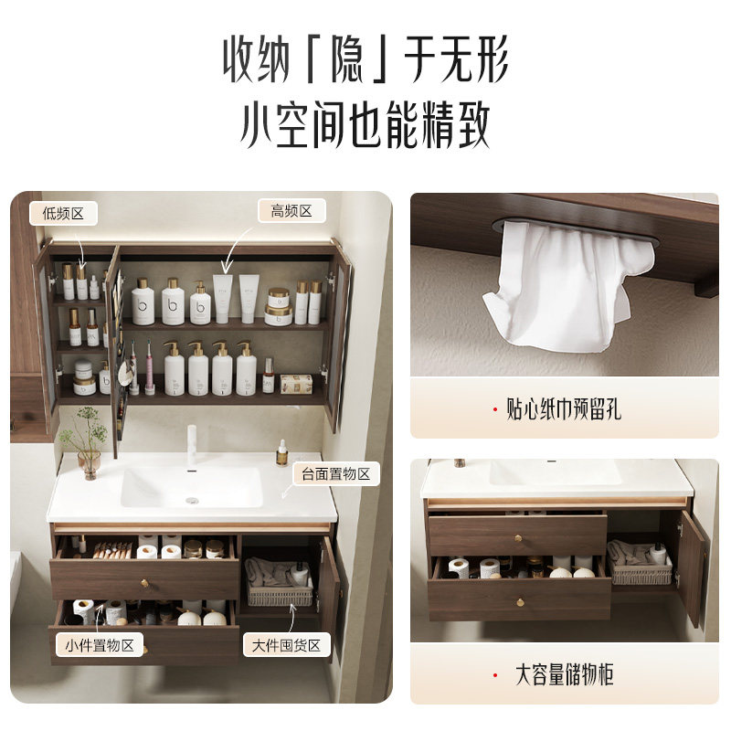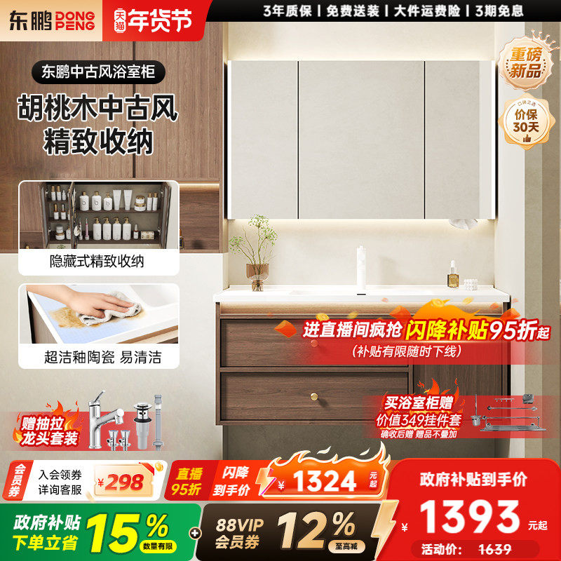 📚 东鹏中古风胡桃木浴室柜组合陶瓷一体盆洗手盆厕所卫生间洗漱台面