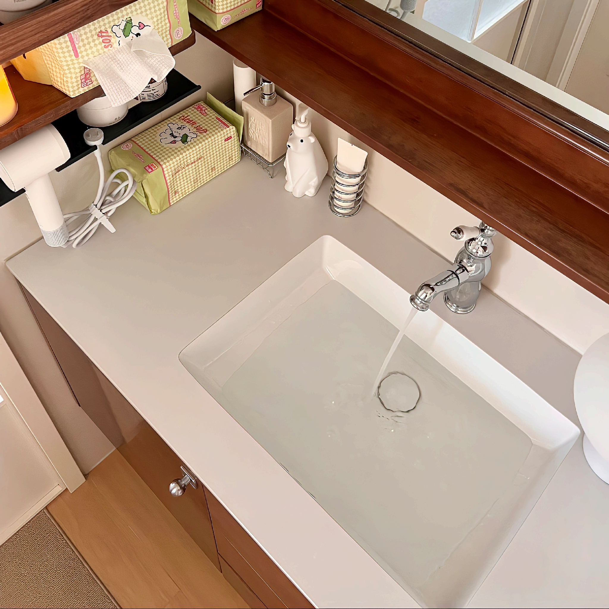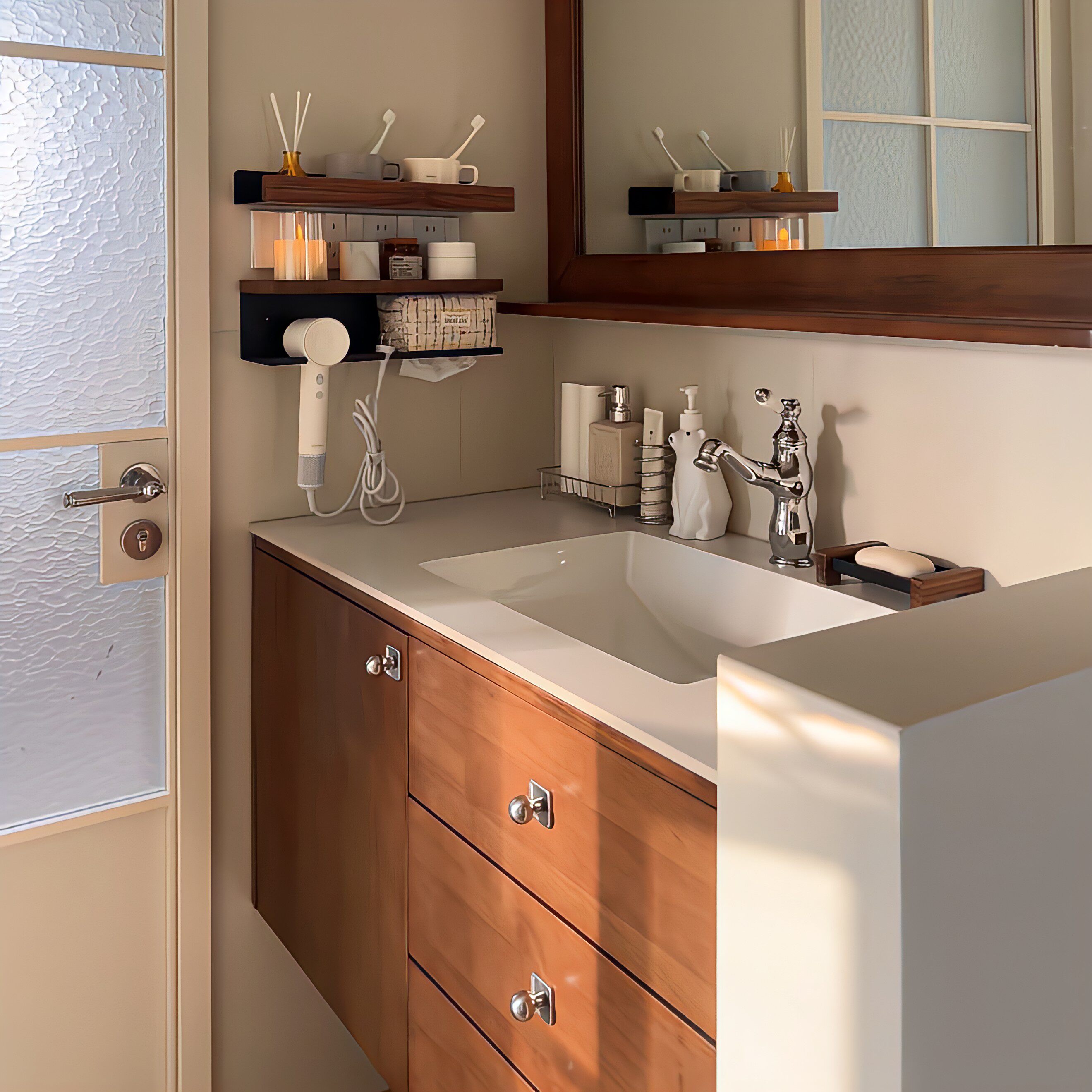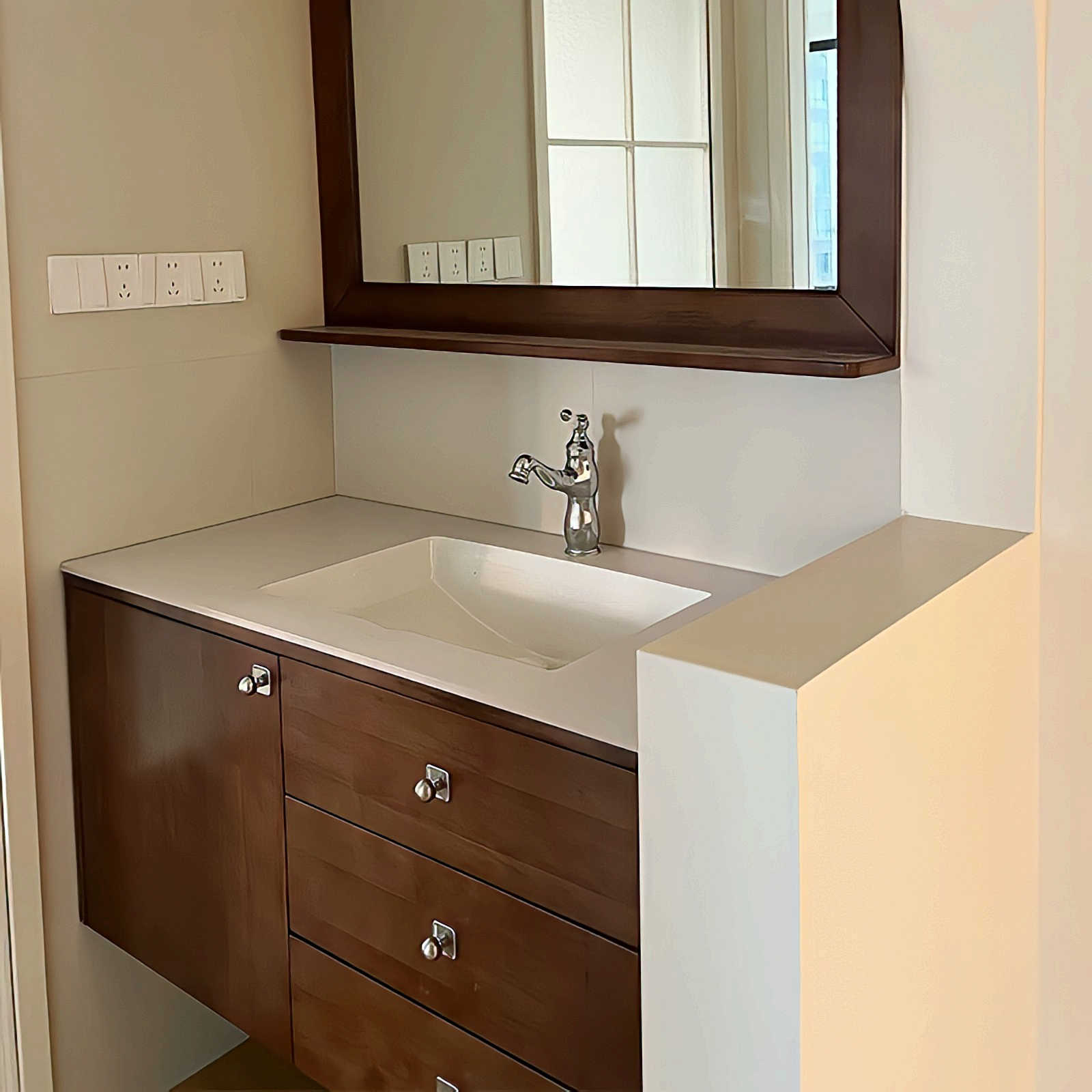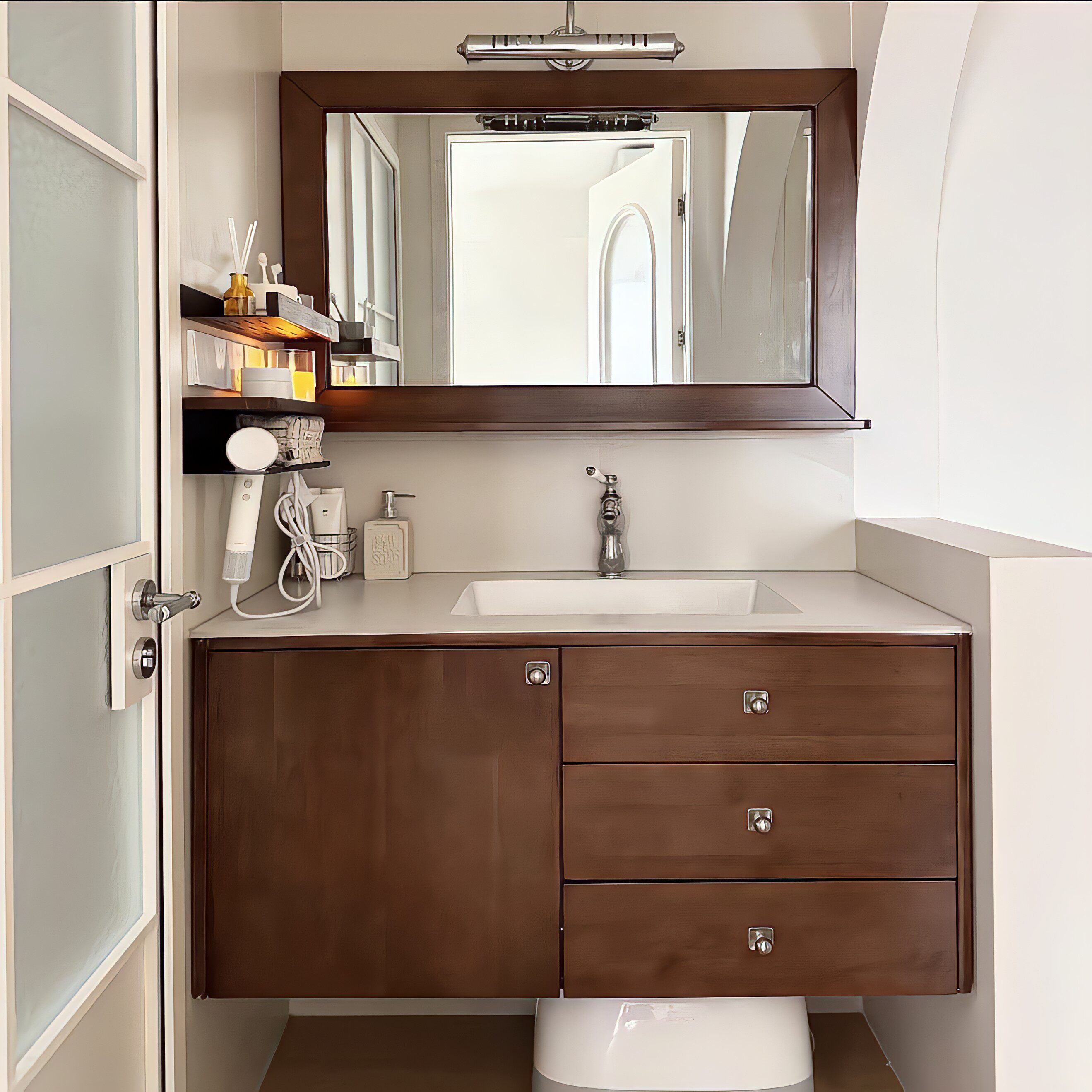 📚 中古风复古实木浴室柜组合卫生间陶瓷一体盆洗手台烤漆洗漱台定制