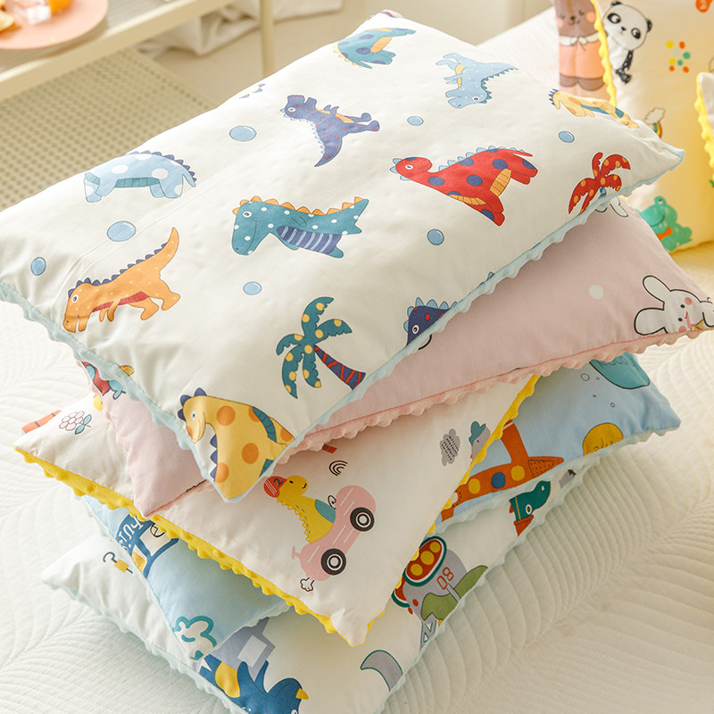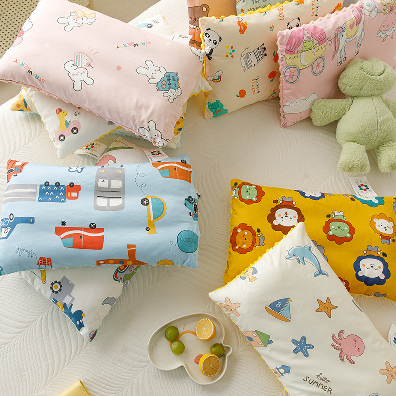 📚 纯棉儿童枕头带枕套中小学生幼儿园1-6-10岁枕芯全棉卡通豆豆枕头