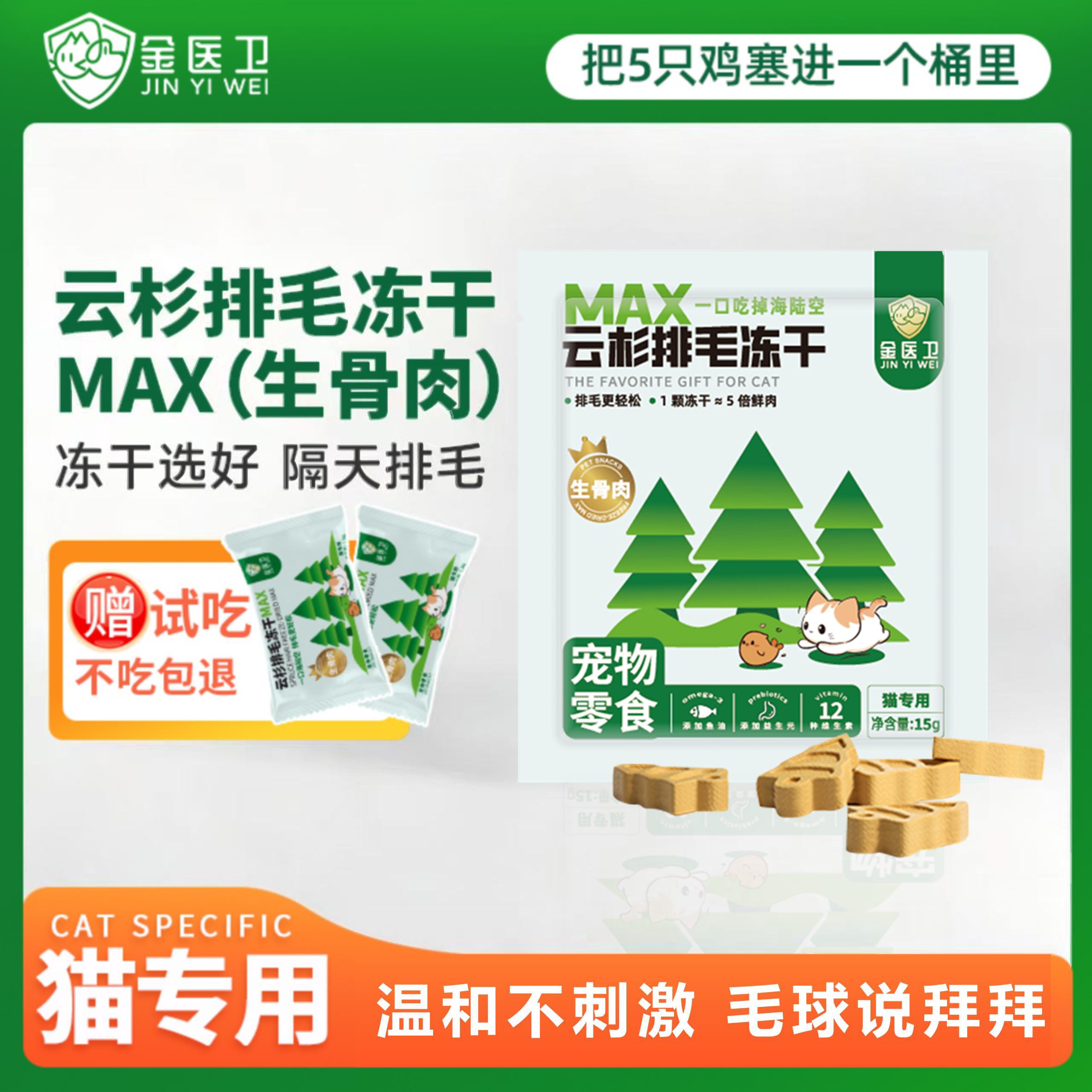 📚 金医卫生骨肉云杉排毛冻干温和排毛化毛毛球克星猫零食猫冻干零食
