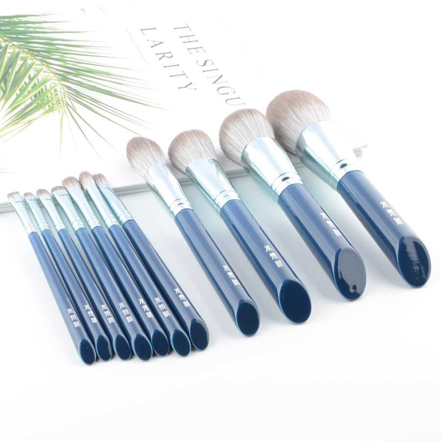 📚 11pcs/Set Blue Makeup brushes Set Foundation Blusher Bronzer