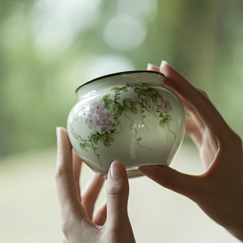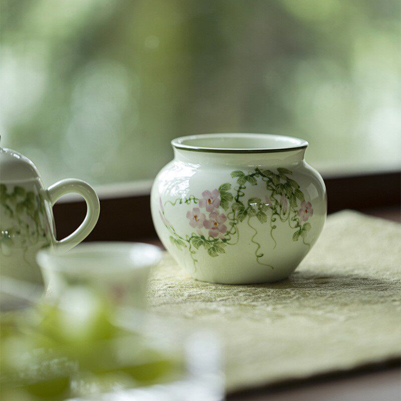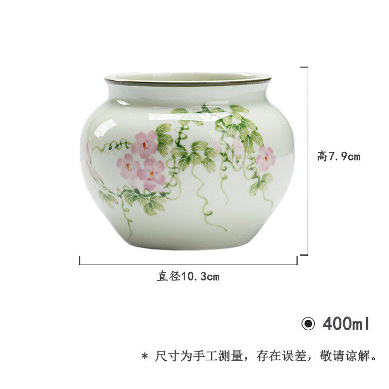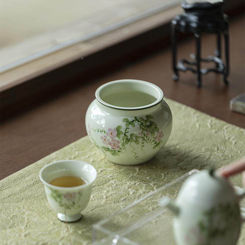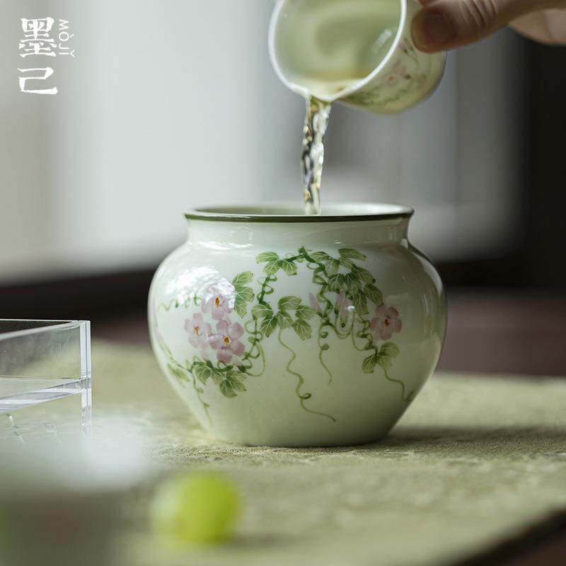 📚 墨小席苍翠废手绘陶瓷建水茶道配件mjtc牵牛花水缸家己用茶摆件水