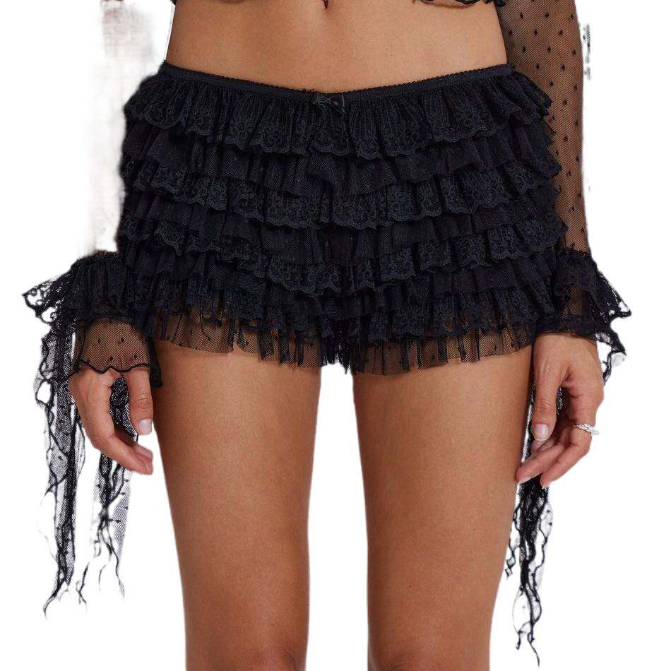 📚 Lace Embroidered Elegant Slim Party Dress荷叶边波浪低腰短裤