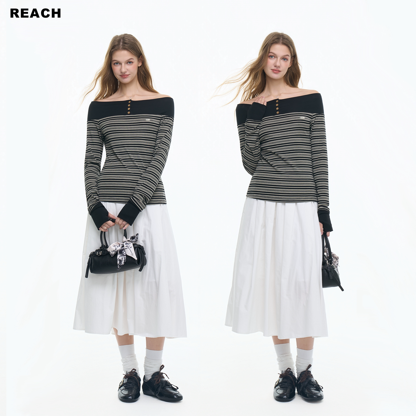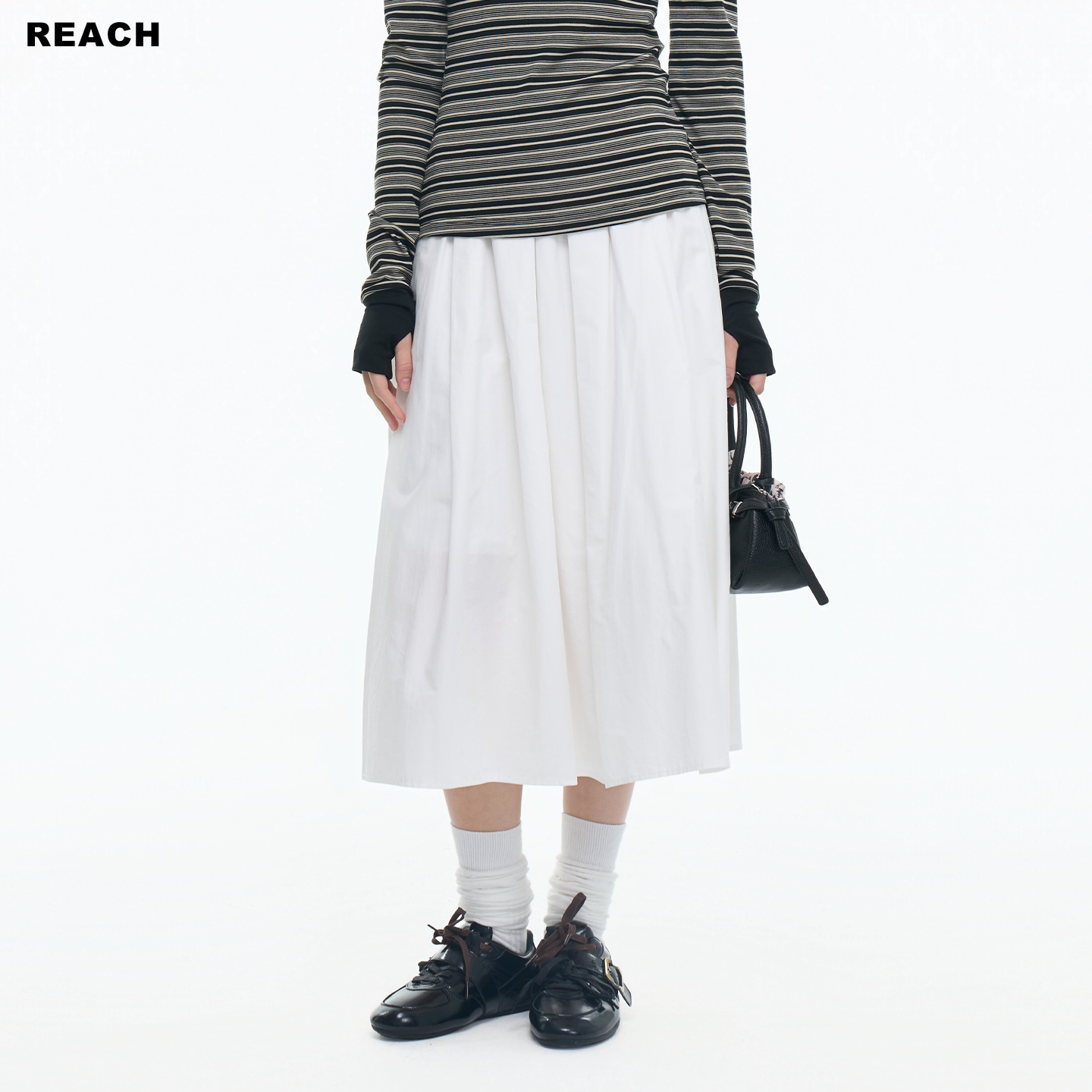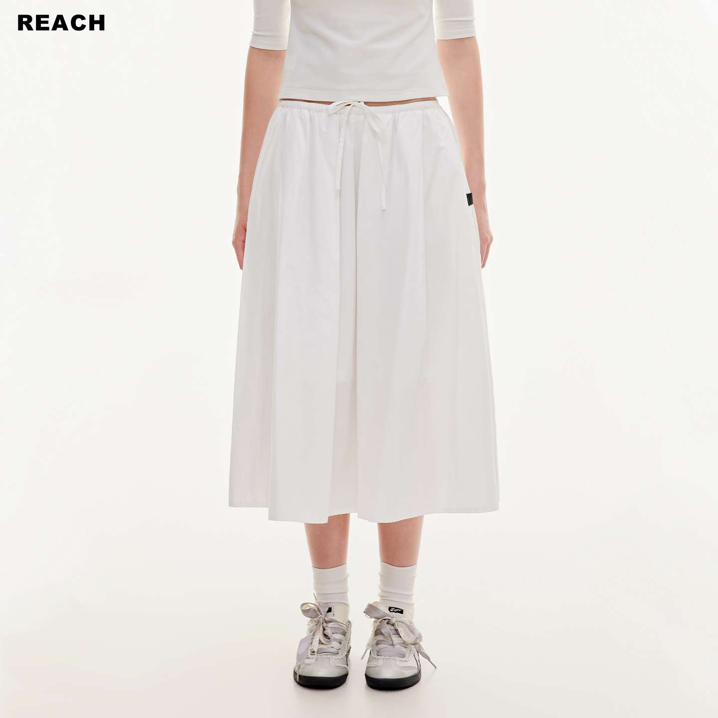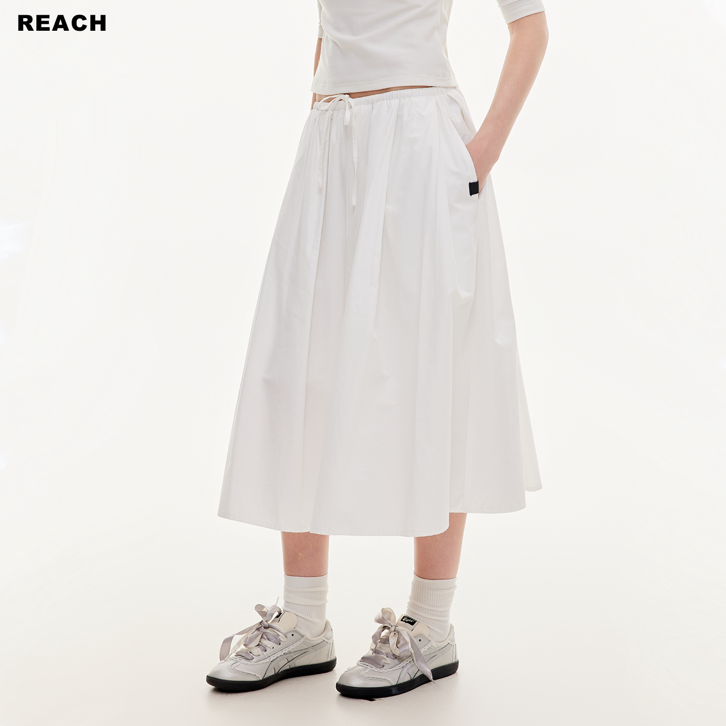 📚 REACH抽绳设计白色H版型A字裙女春夏新款长款摆裙透气简约半身裙