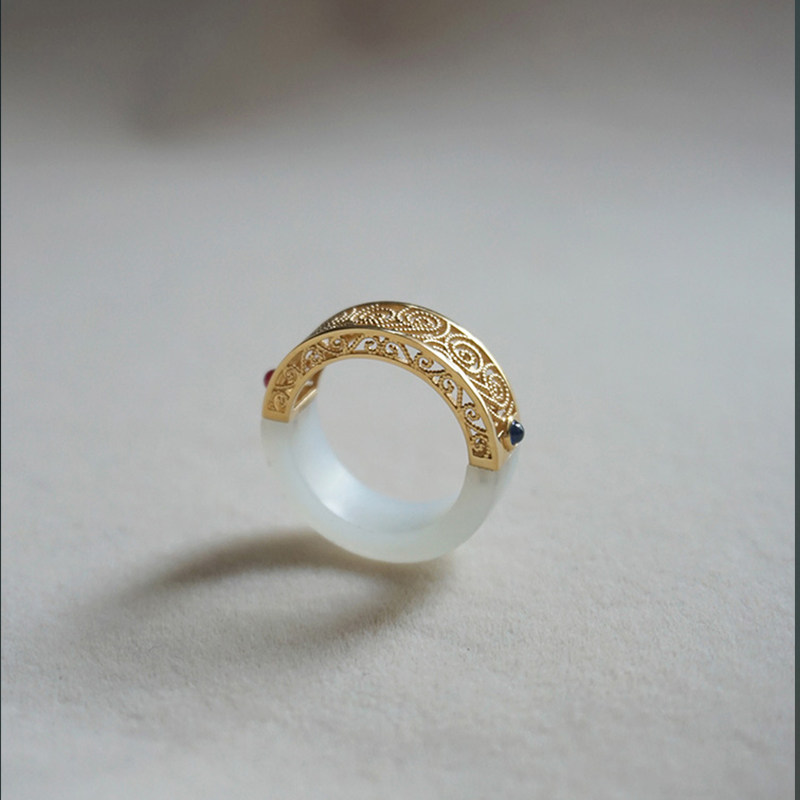 📚 缘物珠宝和田玉籽料新品戒指金镶玉籽料戒指双拼戒指花丝戒指