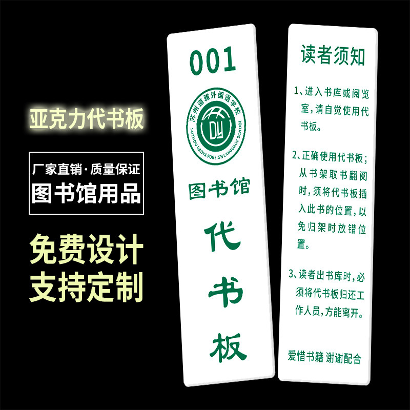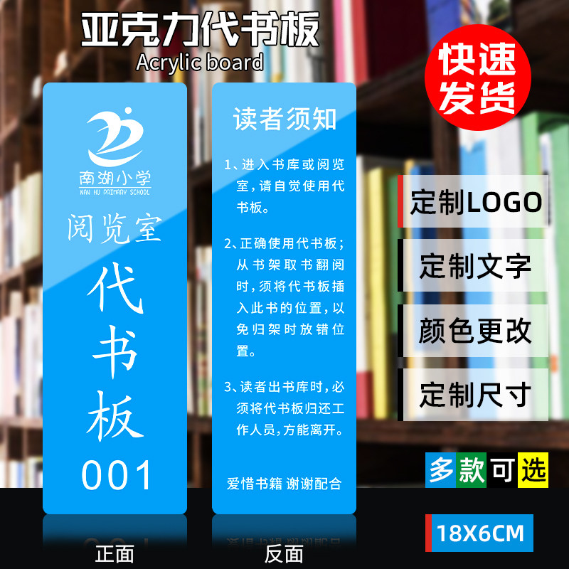 📚 亚克力图书馆卡通山水风代书板阅览室借书板学校书架卡读者须知借阅板阅读卡书位书签牌图书馆用品LOGO可定制