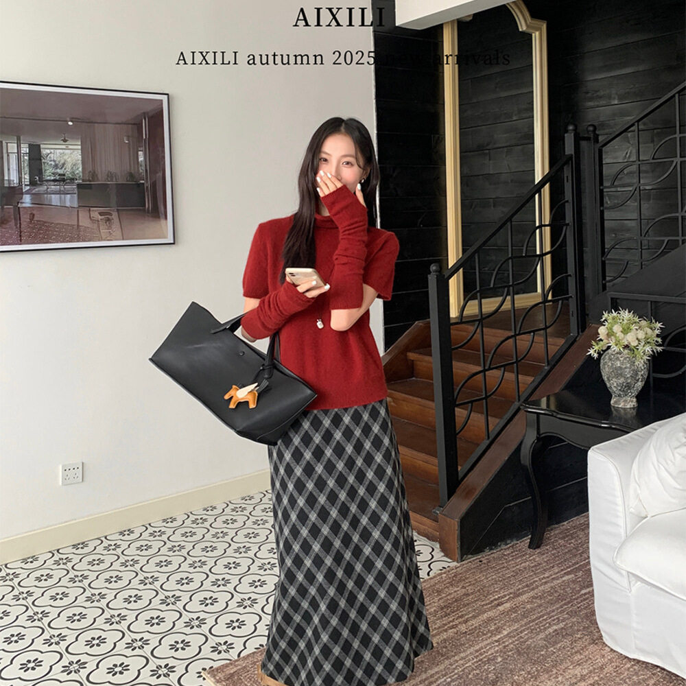 📚 爱西里秋季新款法式复古高级感格子半身裙百搭高腰设计感显瘦裙子