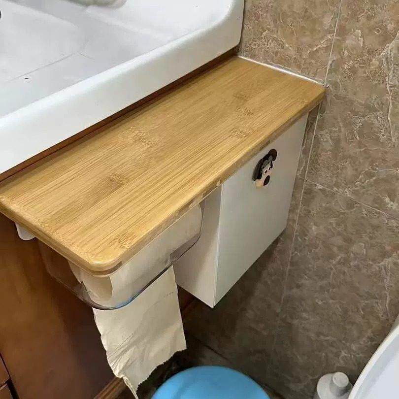 📚 原木风化妆室纸巾盒马桶旁边置物架厕所姨妈巾收纳盒卫生纸盒收纳