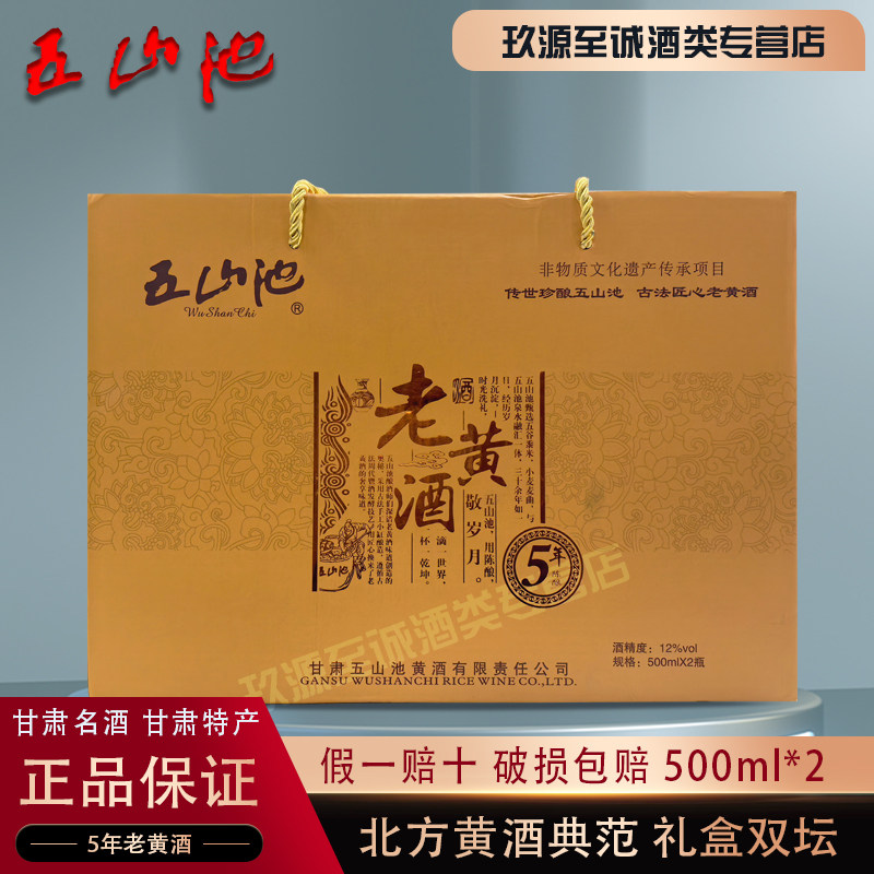 📚 甘肃特产北方名酒12度五山池半干型5年老黄酒特价500ml*2礼盒装