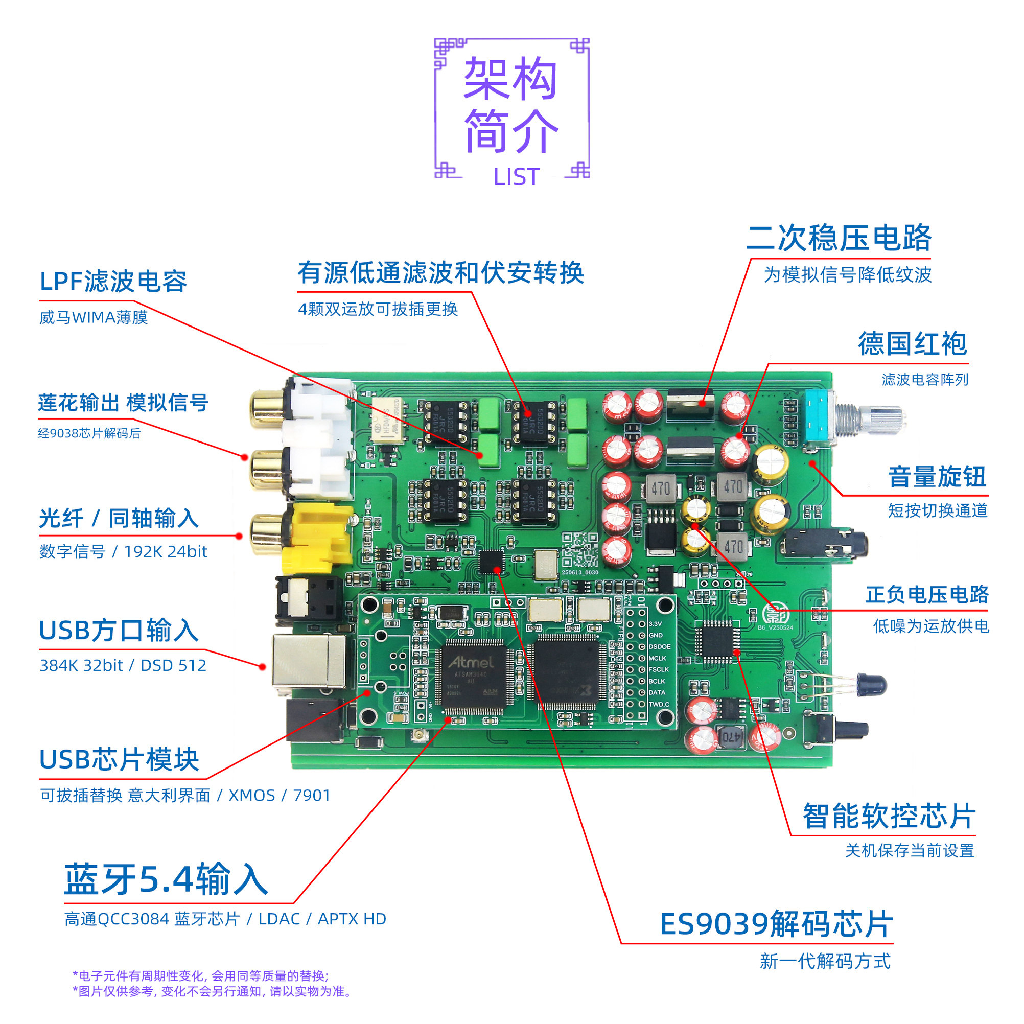 📚 小影B6 ES9039Q2M解码器 USB桌面发烧HIFI音频DAC DSD512蓝牙5.4