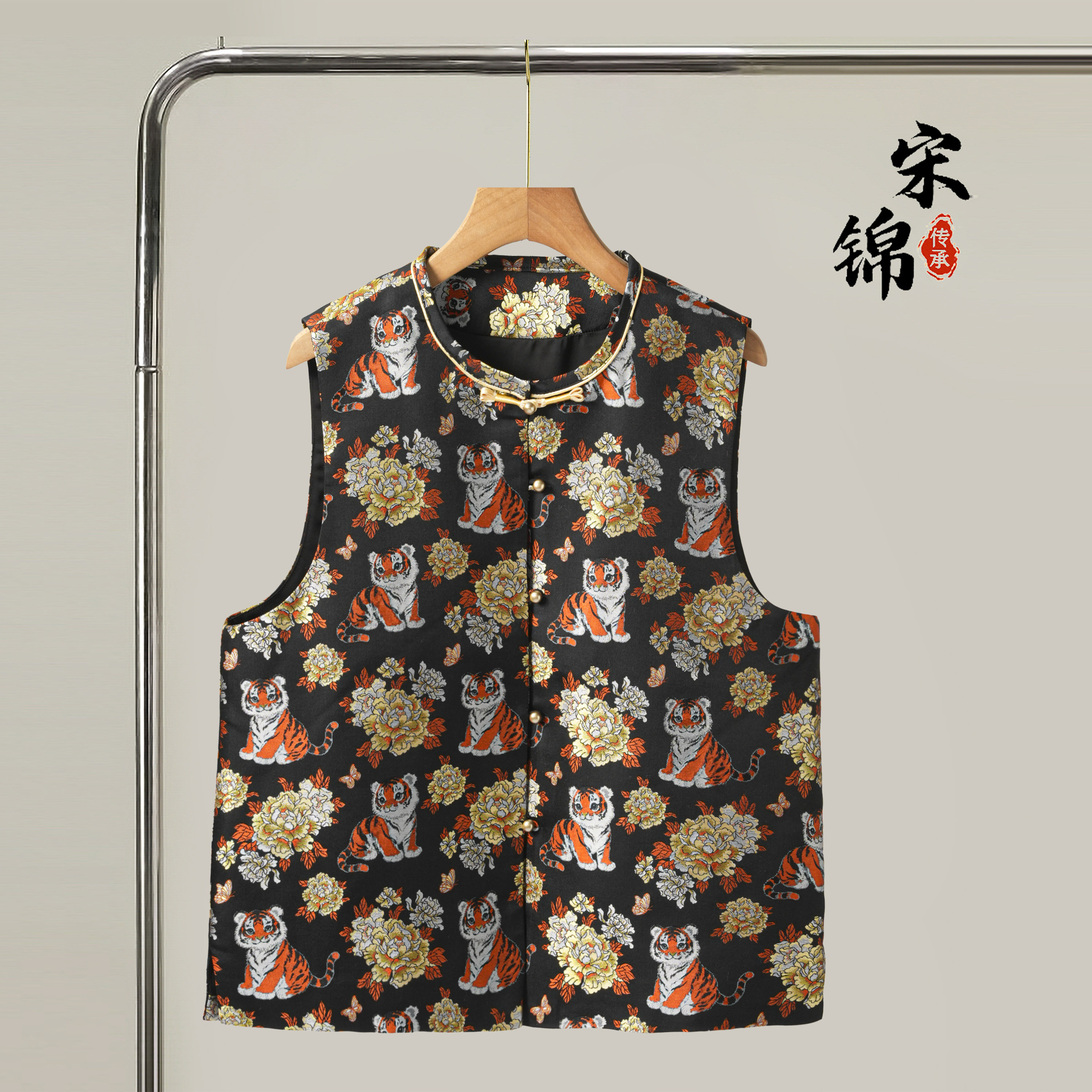 📚 三马萌虎戏园宋锦桑蚕丝新中式对襟马甲外套真丝国风上衣开衫外搭