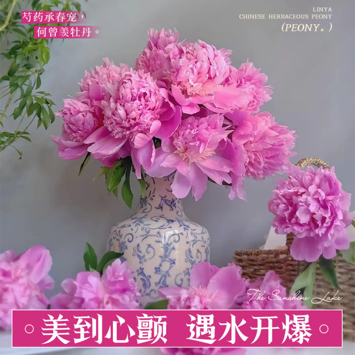 📚 芍药鲜花云南直发落日珊瑚重瓣花束进口山东油画牡丹百合鲜切花卉