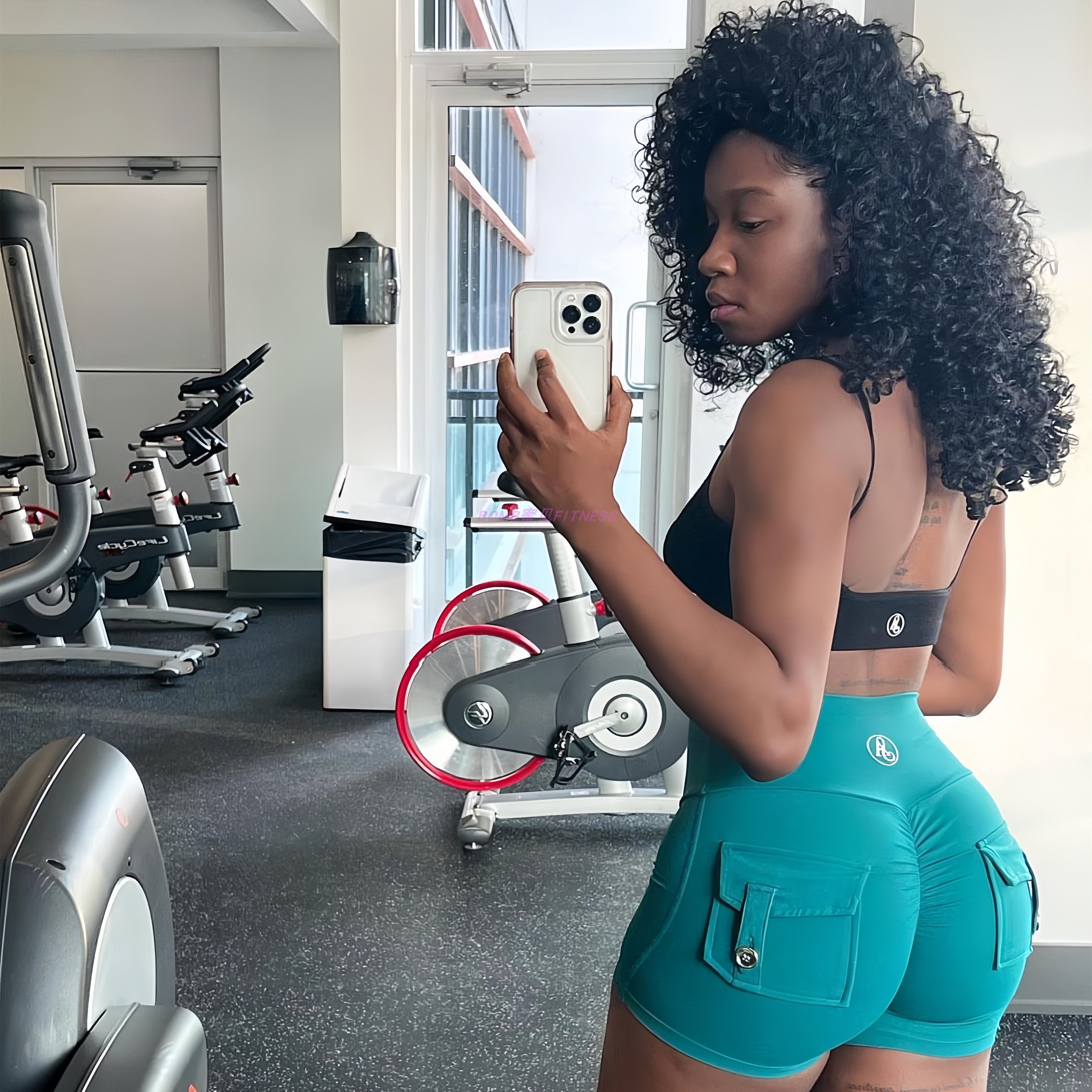 📚 软糯显臀BOMB蜜见 五花肉ATB女高腰带兜紧身蜜桃健身瑜伽三分短裤