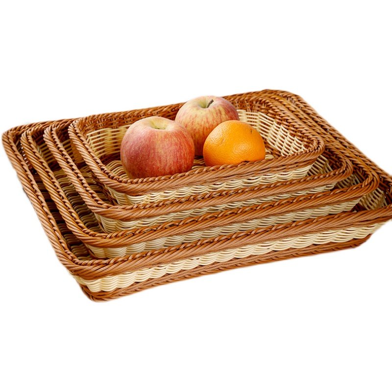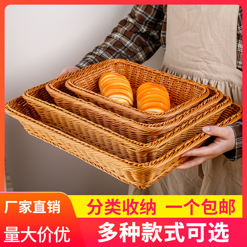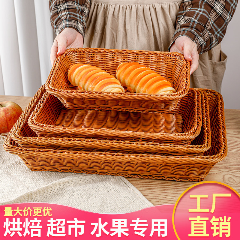 📚 仿藤编加高长方收纳筐水果面包沥水生鲜果蔬商超三明治馒头收纳篮