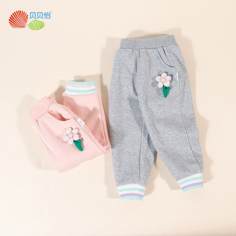 #贝贝怡女童加绒裤子 #洋气春秋冬裤 #舒适束脚长裤 #立体花朵 #券后特惠