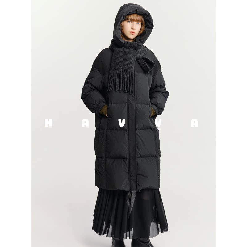 📚 HAVVA中长款高充绒量羽绒服宽松直筒连帽女士外套2025冬季Y3-2627