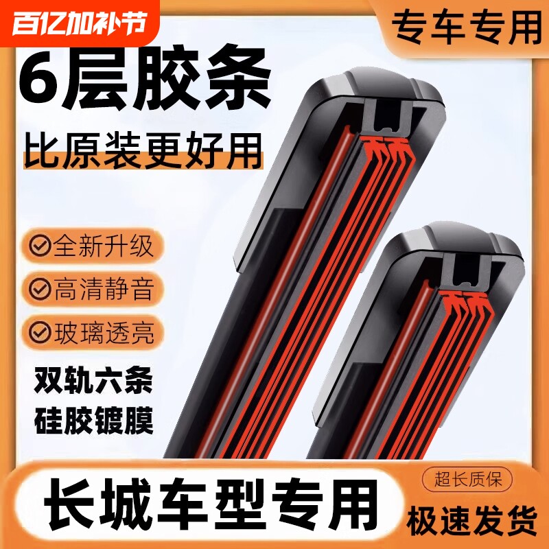 📚 六层胶条长城炮雨刮器坦克300腾翼C30C50风骏5金刚炮炫丽雨刷片