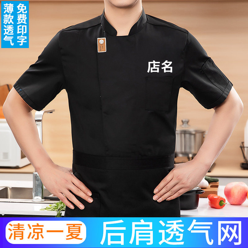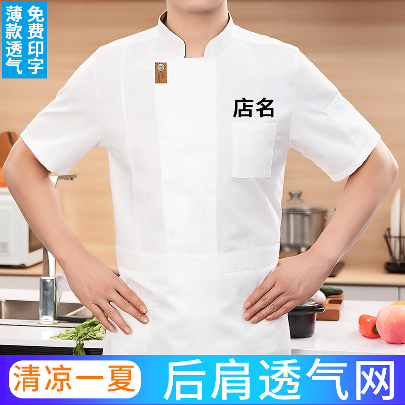 📚 防水厨师工作服短袖男夏季女餐饮烘焙蛋糕食堂后厨房长袖服装定制