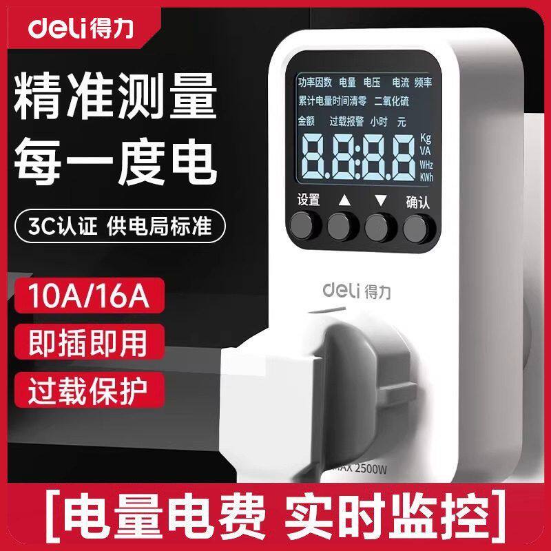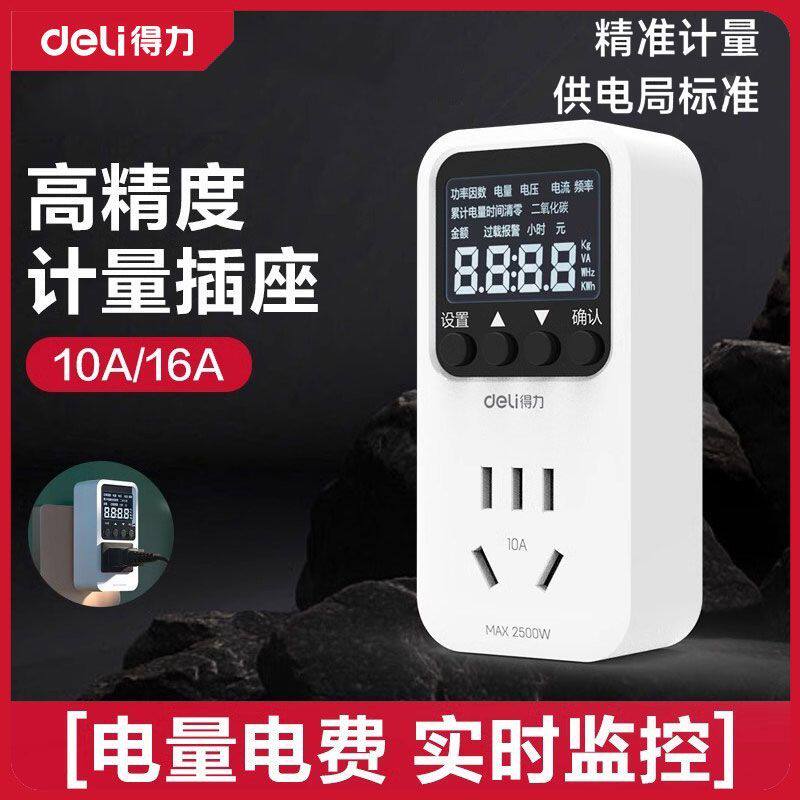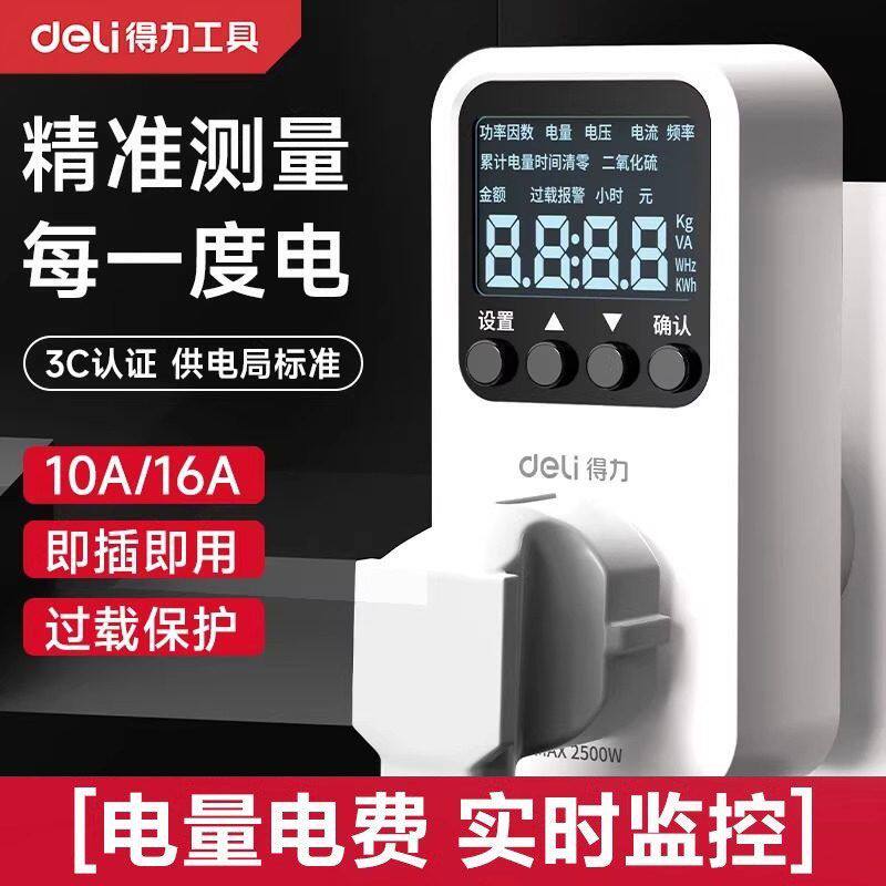 📚 得力工具计量插座家用电费检测仪空调冰箱大功率电器耗电检测器