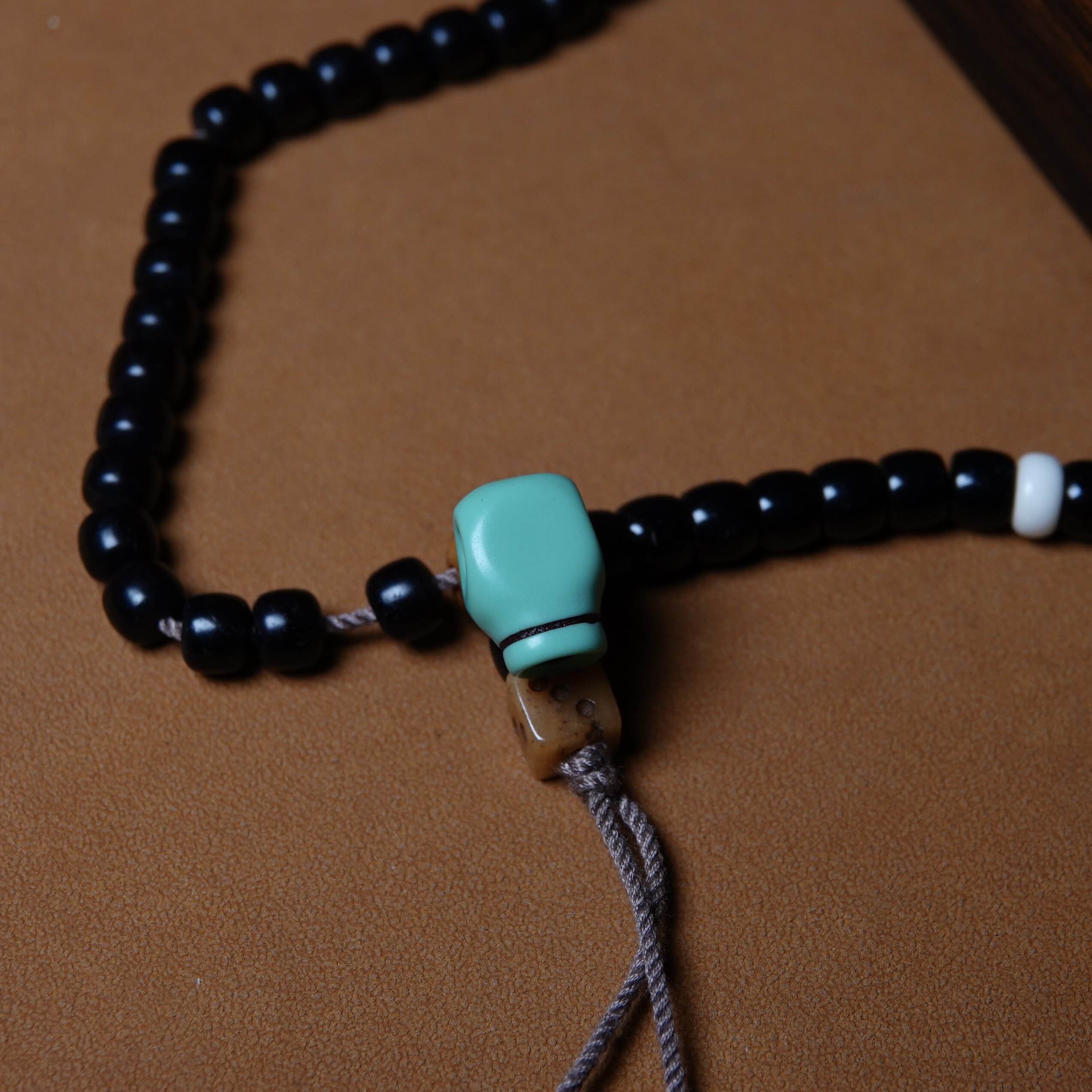📚 大磨损孔道包浆蓝色树脂一体式料器三通佛头超润文玩佛珠束尾藏式