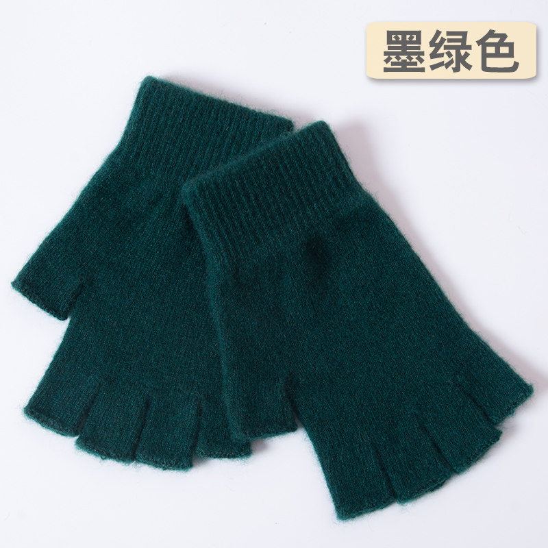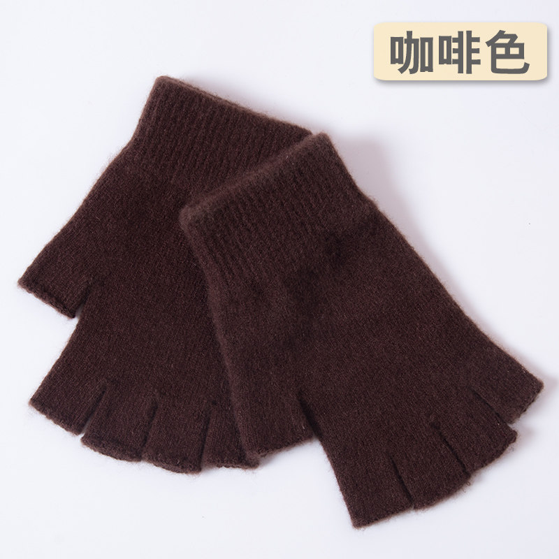 📚 羊毛半指手套女秋冬季羊绒线分指露指男手套学生针织保暖可爱韩版