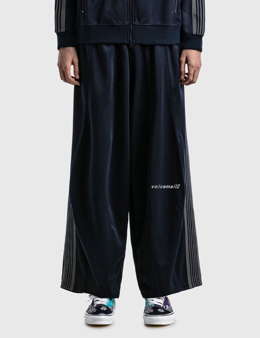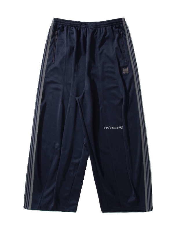📚 NEEDLES HD藏青色蝴蝶刺绣长裤宽版欧美运动灯笼裤直筒阔腿胖胖裤