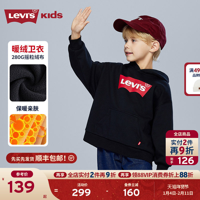📚 【加绒】Levi's李维斯儿童童装卫衣2025冬新款男女童连帽长袖女