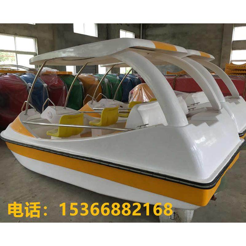 📚 观光船水上电动船自排水公园游船四5人脚踏船水上游乐船玻璃钢船